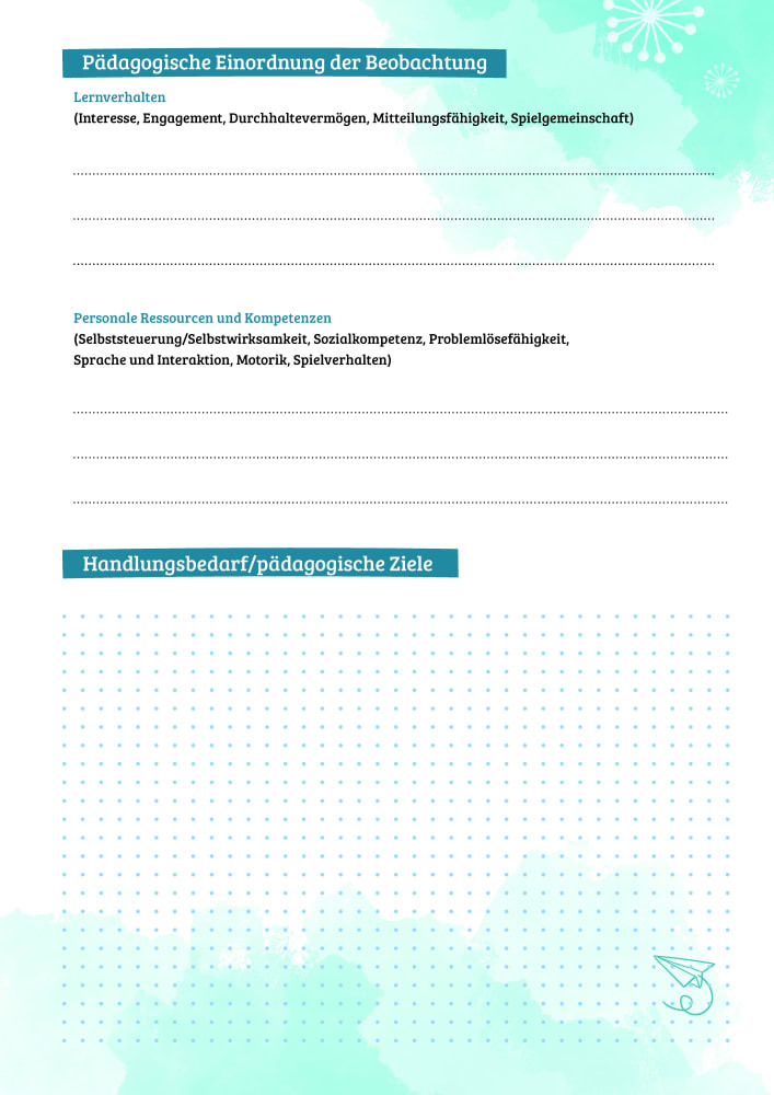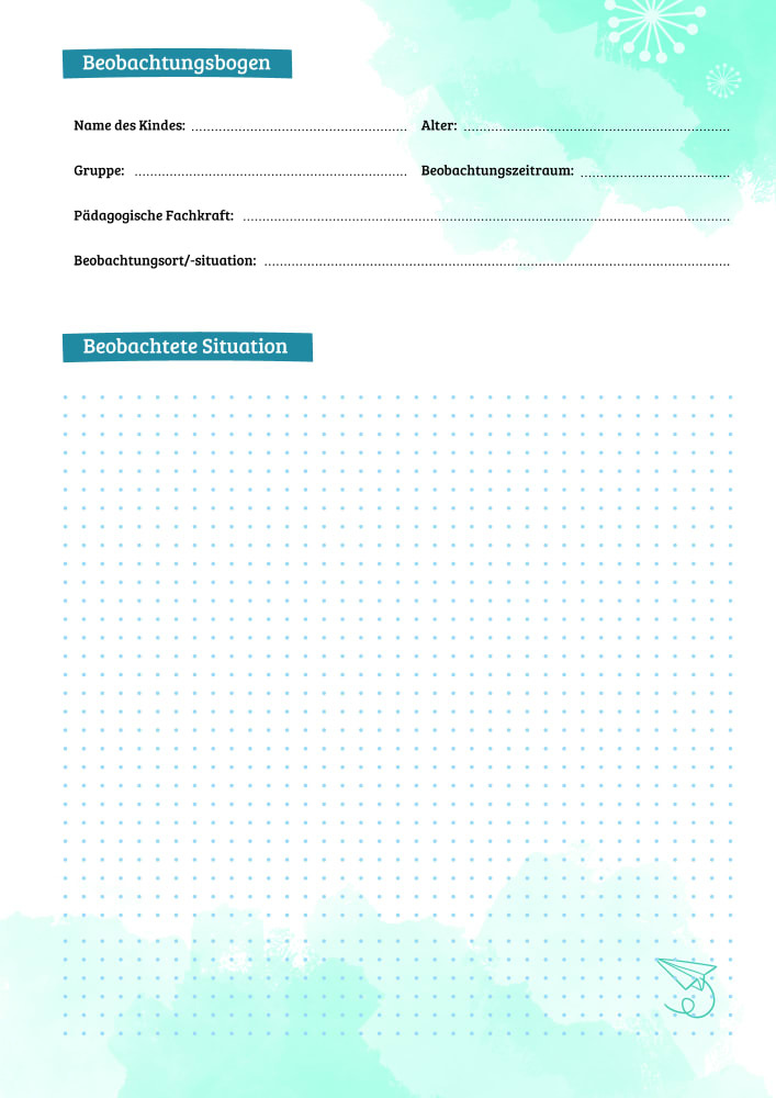 Abreißblock für übersichtliche Dokumentation von Beobachtungen im Kita-Alltag, mit vorgefertigter Gliederung für einfache Auswertung. So geht keine Info verloren: Praktische Beobachtungsbögen für die Kita Für jedes Gespräch mit den Eltern von Kita-Kindern gilt...