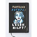 Mit dem Motiv »Plötzlich rechts? Lesen hilft!« hat die Illustratorin Steph von Reiswitz eine Ikone gegen den Rechtsruck geschaffen. Das A5-Notizbuch mit Hardcover umfasst 96 linierte Seiten, ist mit einem Elastikband verschließbar und hat ein schwarzes Lesebä...