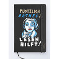 Mit dem Motiv »Plötzlich rechts? Lesen hilft!« hat die Illustratorin Steph von Reiswitz eine Ikone gegen den Rechtsruck geschaffen. Das A5-Notizbuch mit Hardcover umfasst 96 linierte Seiten, ist mit einem Elastikband verschließbar und hat ein schwarzes Lesebä...