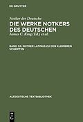 Klappentext Dieser »Notker latinus« zu den zehn Kleineren Schriften umfaßt nicht nur die primären Quellen, sondern auch Parallelen in Notkers sonstigem Schaffen und in anderen Texten. Im Textband hatten die Herausgeber den sog. St. Galler Traktat (Ntr), die »D...