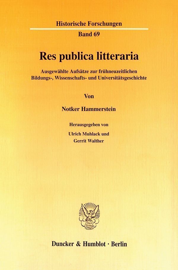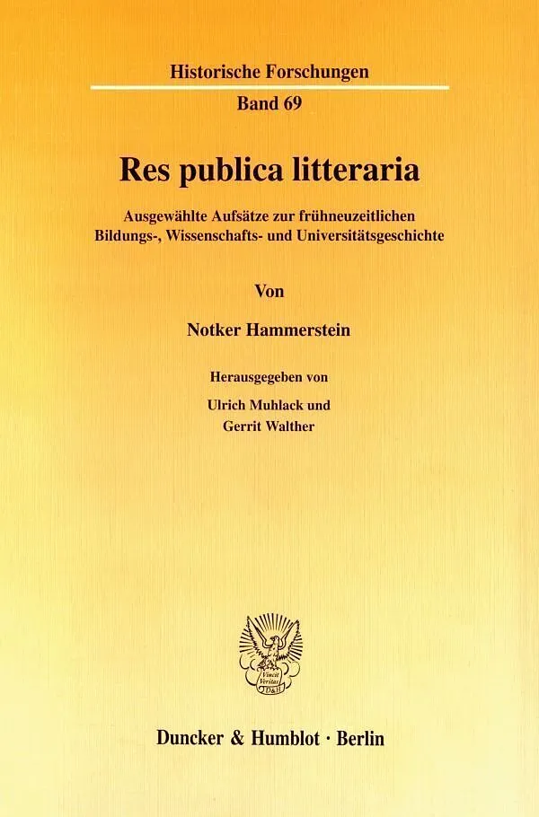 Dieser Band versammelt ausgewählte Aufsätze von Notker Hammerstein zur Bildungs-, Wissenschafts- und Universitätsgeschichte im Heiligen Römischen Reich deutscher Nation: in dem ganzen Zeitraum vom Humanismus bis zum Neuhumanismus, mit besonderer Berücksichtigung der Aufklärungsepoche und der in sie fallenden Neuerungen institutioneller und inhaltlicher Art, immer im Zusammenhang mit der allgemeinen Geschichte. Es ist das Forschungsgebiet, auf dem der Autor wissenschaftlich zuerst hervorgetreten ist, das er durch seine Arbeiten geradezu mitbegründet hat und auf dem er bis heute eine maßgebliche Rolle spielt. Die hier wiederabgedruckten Beiträge sind nur ein Ausschnitt aus einer Fülle von Artikeln, die Hammerstein, neben und nach seinen großen Büchern über "Jus und Historie" (1972) und "Aufklärung und katholisches Reich" (1977), in fast ununterbrochener Reihe veröffentlicht hat: durchweg Abhandlungen von hohem spezifischem Gewicht, ohne die der gegenwärtige Forschungsstand nicht zu denken ist. Unsere Auswahl bietet Texte allgemeineren Inhalts: Überblicke, Gesamtwürdigungen und Zusammenfassungen, die ein eindrucksvolles Panorama frühneuzeitlicher Kultur- und Geistesgeschichte ergeben. Die Aufsätze sind dabei in eine Abfolge gebracht, die nicht von einer nachträglichen thematischen Systematisierung, sondern von der Entstehungszeit bestimmt ist. Auf diese Weise wird der immanente Erkenntnisprozeß, das sich fortgesetzt erweiternde und differenzierende Problembewußtsein des Autors sichtbar: eine Sukzession von Erkenntnisinteressen und Forschungsergebnissen, die sich Zug um Zug zu einem konkreten Ganzen zusammenfügen. Der Sammelband macht nicht nur bisher vielerorts zerstreute, zuweilen auch an entlegener Stelle publizierte Arbeiten wiederum bequem zugänglich; er läßt sich auch wie eine Monographie lesen, die über die bloße Summierung von Teilen hinausgeht, und soll damit die Forschung neuerlich befruchten. Der Band erscheint aus Anlaß des 70. Geburtstages von Notker Hammerstein und richtet sich an jene, denen, hier wie anderswo, an kompetenter Belehrung und an klarem historischem Denken gelegen ist.