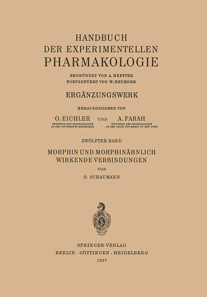 Um den Umfang der vorliegenden Monographie in erträglichen Grenzen zu halten und eine größere Übersichtlichkeit zu wahren, wurden von der Literatur bis zum Jahre 1940 nur diejenigen Arbeiten besprochen, die wesentliches zur Pharmakologie des Morphin beitrugen ...Um den Umfang der vorliegenden Monographie in erträglichen Grenzen zu halten und eine größere Übersichtlichkeit zu wahren, wurden von der Literatur bis zum Jahre 1940 nur diejenigen Arbeiten besprochen, die wesentliches zur Pharmakologie des Morphin beitrugen und auch heute noch Geltung besitzen. Diese Beschränkung war um so eher möglich, als in der ausgezeichneten Mono graphie von KRUEGER, EDDY und SUMWALT aus dem Jahr 1941 "The pharmacology of the opium alcaloids" die Weltliteratur bis zu diesem Zeitpunkt fast lückenlos gesammelt und kritisch besprochen worden ist. Dagegen wurde die Literatur nach 1940 bis Anfang 1957 nach Möglichkeit vollständig bearbeitet, wobei von klinischen Arbeiten allerdings nur diejenigen Berücksichtigung fanden, die für die Pharmakologie von Bedeutung sind. Das Jahr 1940 ist durch die Entdeckung der vollsynthetischen, morphinähnlich wirkenden Verbindungen ein Markstein in der Pharmakologie dieser wichtigen Therapeutica. Da infolge der fast unbegrenzten Variationsmöglichkeit der che mischen Grundtypen jetzt Hunderte von Verbindungen mit morphinähnlicher Wirkung verfügbar wurden, konnte versucht werden, gemeinsames im chemischen Aufbau und in der Pharmakodynamie herauszuarbeiten. Dabei zeigte sich, daß die schmerzstillende Wirkung nicht die einzige, vielleicht nicht einmal die wich tigste therapeutisch verwertbare Eigenschaft dieser Verbindungen ist. Deshalb wurde mit Absicht im Titel das Wort "Analgetica" vermieden und der allgemeinere Ausdruck "morphinähnlich wirkende Verbindungen" gewählt.