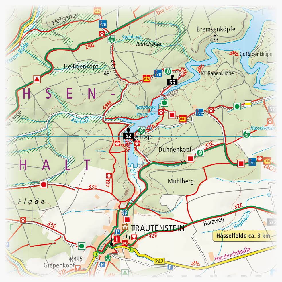 Die Rad- und Wanderkarte markiert und beschreibt viele Wege durch den Nationalpark Harz. Das Mittelgebirge mit dem Brocken (1.142 m ü. NN) als höchster Erhebung gilt als ideales Gebiet für geübte Radler und Wanderer. Besonders erwähnenswert ist ein eigenes Weg...