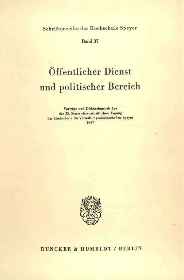 Klappentext Für diesen Titel ist noch kein Beschreibungstext vorhanden. Inhalt F. Duppré Der leitende Beamte und die politische Spitze des Amtes M. Fellner Staatsbehörden im politischen Spannungsfeld J. Schmidt Politische Betätigungsfreiheit und dienstrechtlic...