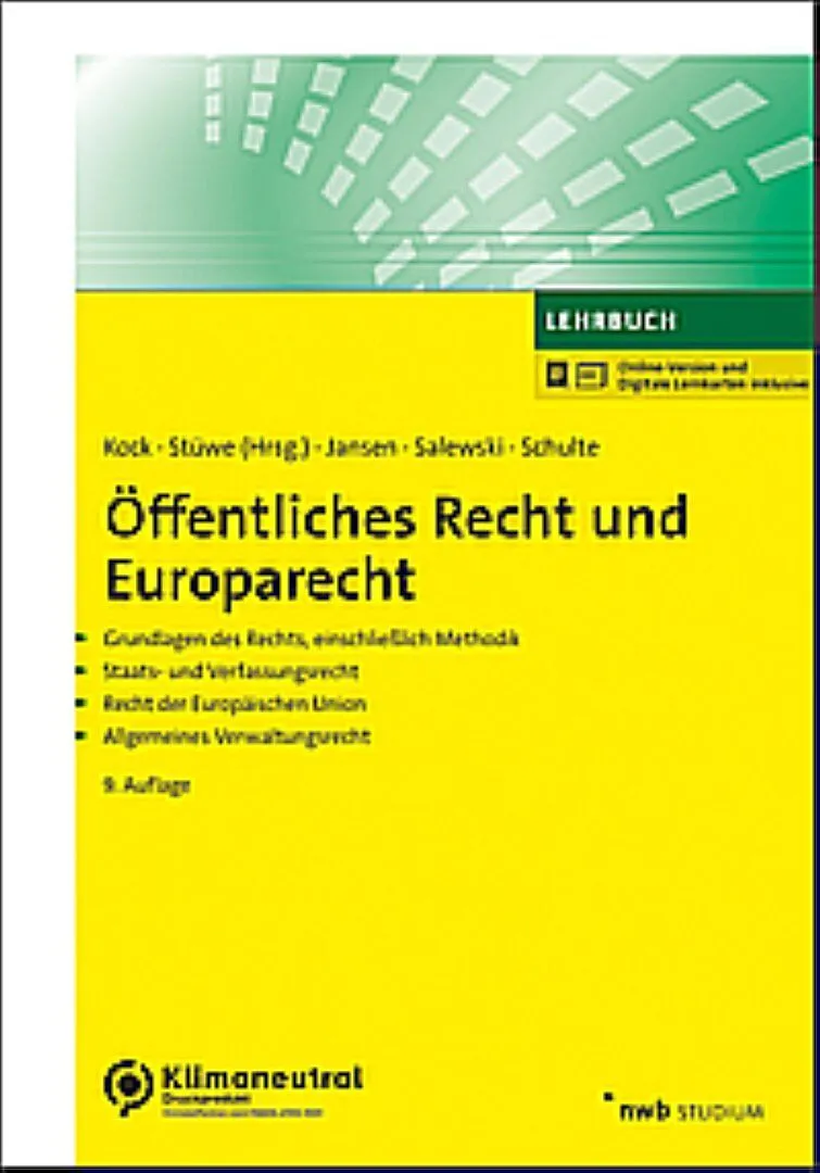 Der systematische Überblick über das Öffentliche Recht und Europarecht. Dieses Lehrbuch bietet einen grundlegenden und umfassenden Überblick über die Prüfungsgebiete Staats- und Verfassungsrecht, Europarecht und Allgemeines Verwaltungsrecht. Der als komplizier...