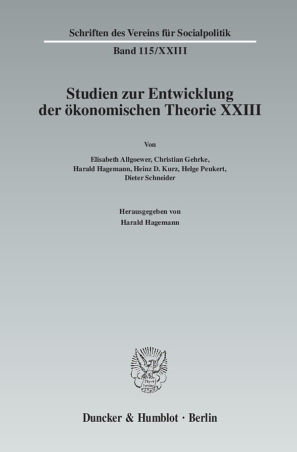 Der vorliegende Band der Studien zur Entwicklung der ökonomischen Theorie vereinigt die überarbeiteten Referate der 25. Jahrestagung des Dogmenhistorischen Ausschusses, die im Universitätsclub Bonn stattfand. Im Zentrum der Debatten standen die vielfältigen We...