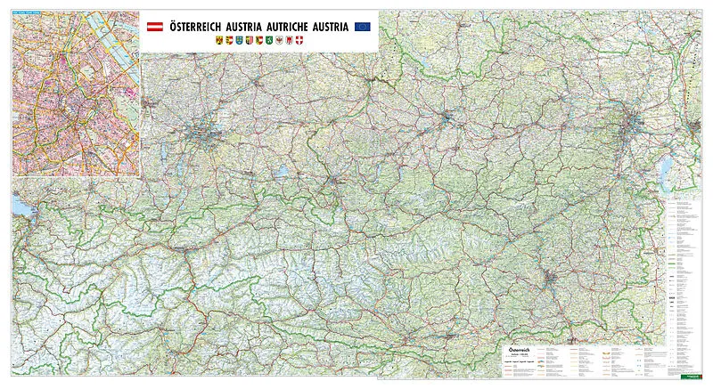 Österreich, Straßenkarte 1:300.000, Großformat, Magnetmarkiertafel