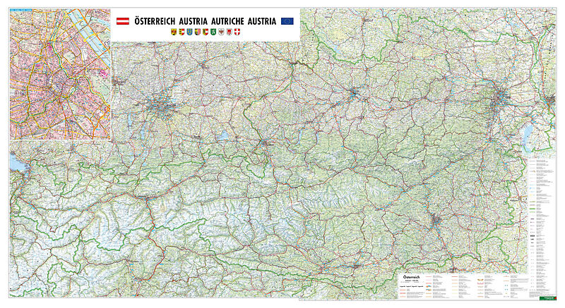 Österreich, Straßenkarte 1:300.000, Großformat, Poster