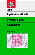 Topographische Karte 1:25.000, mehrfarbig, mit Wegmarkierungen, Bushaltestellen, Schummerung, Felszeichnung, Gletscherdarstellung, Kennzeichnung der Klettersteige, UTM-Gitter. Gebiet: Kaunergrat mit Nertal und dem Gepatsch Stausee im Westen und Pitztal im Oste...
