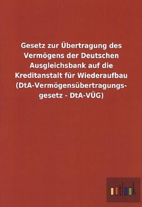Text des Gesetz zur Übertragung des Vermögens der Deutschen Ausgleichsbank auf die Kreditanstalt für Wiederaufbau (DtA-Vermögensübertragungsgesetz - DtA-VÜG). Klappentext Text des Gesetz zur Übertragung des Vermögens der Deutschen Ausgleichsbank auf ...