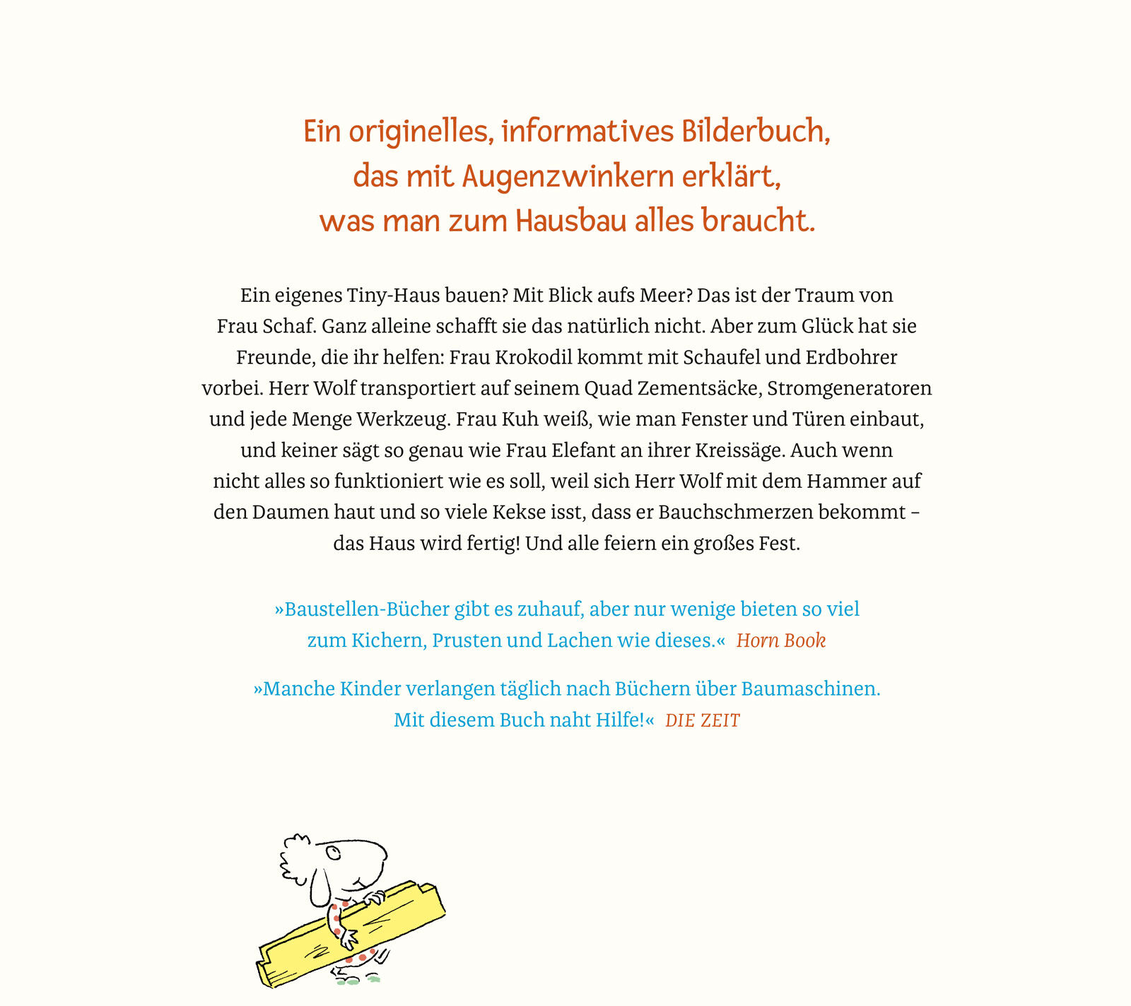 Wir bauen ein Haus! Ein Riesenspaß für Groß und Klein mit Witz illustriert von Ole Könnecke Ein eigenes Tiny House bauen? Mit Blick aufs Meer? Das ist der Traum von Frau Schaf. Ganz allein schafft sie das natürlich nicht. Aber zum Glück hat sie Freunde, die ih...
