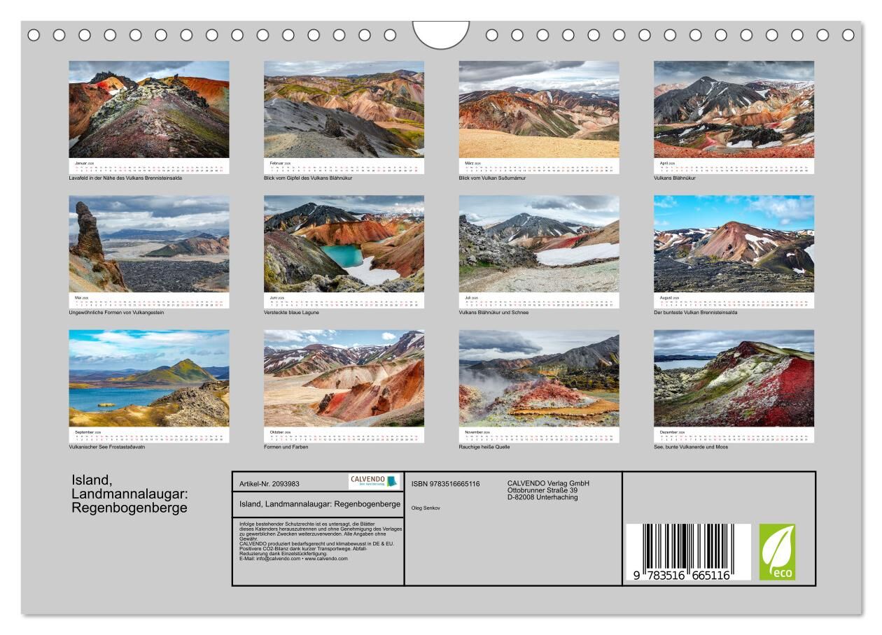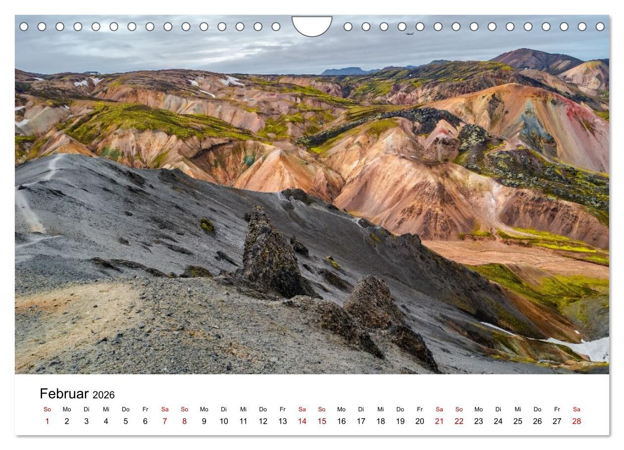 ntdecken Sie die faszinierende Vulkanlandschaft von Landmannalaugar im Herzen des isländischen Hochlands. Dieser Kalender zeigt atemberaubende Aufnahmen der Regenbogenberge, des Lavafelds nahe dem Vulkan Brennisteinsalda, beeindruckende Ausblicke von den Gipfe...