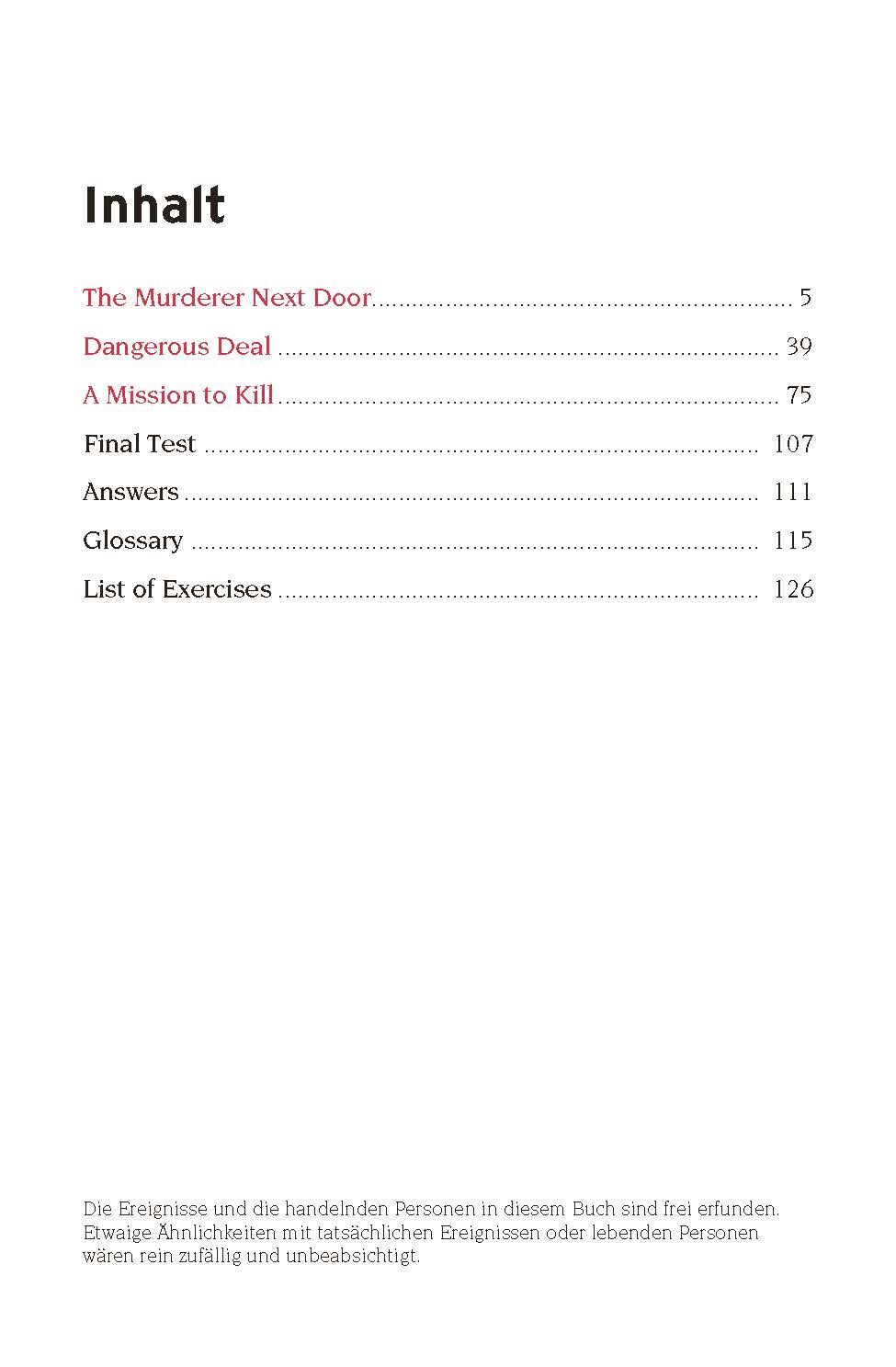 Sie lernen gerade Englisch und möchten Ihre Sprachkenntnisse verbessern oder vorhandenes Wissen auffrischen? Sie wollen lernen und dabei unterhalten werden? Sie lieben spannende Geschichten und wollen authentische Texte auf Englisch lesen? Dann sind unsere Lernkrimi Kurzkrimis genau das Richtige für Sie. In "The Murderer Next Door" erwarten Sie drei spannende Kriminalfälle, die von muttersprachlichen Autorinnen speziell für das Niveau A1 geschrieben wurden. Mit dem einzigartigen Lernkonzept des Circon Verlags erwerben Sie spielerisch Sprachkompetenzen. Gehen Sie mit unseren Ermittlerinnen auf Verbrecherjagd und verbessern Sie ganz nebenbei Ihren Englisch-Wortschatz, vertiefen Sie Ihre Grammatikkenntnisse und erfahren Sie Wissenswertes über Land und Leute. Speziell konzipierte, thematische Übungen werden in die spannenden Kriminalfälle eingebunden und erhöhen den Lerneffekt. So geht Sprachenlernen ganz nebenbei!