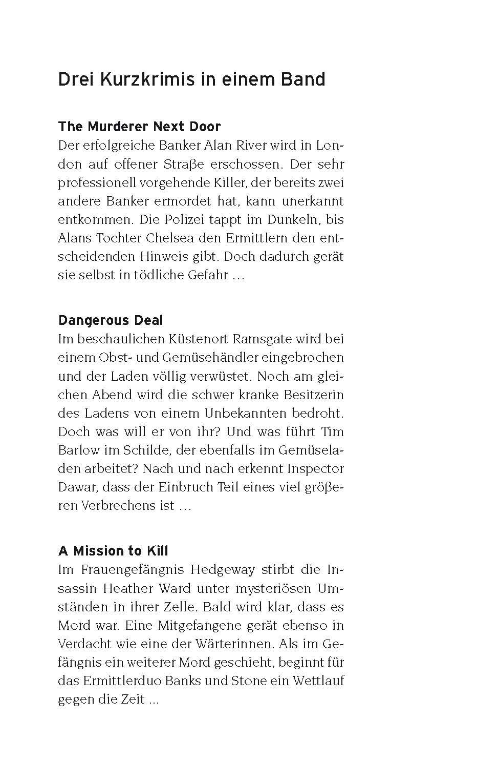 Mehrere Londoner Banker werden von einem professionellen Killer auf offener Straße ermordet, doch die Polizei tappt im Dunkeln. Im beschaulichen Küstenort Ramsgate wird bei einem Obst- und Gemüsehändler eingebrochen zunächst nichts Ungewöhnliches. Doch nach und nach erkennt Inspector Dawar, dass der Einbruch Teil eines viel größeren Verbrechens ist. Eine Insassin des Frauengefängnisses stirbt unter mysteriösen Umständen. Als ein weiterer Mord geschieht, beginnt ein Wettlauf gegen die Zeit.