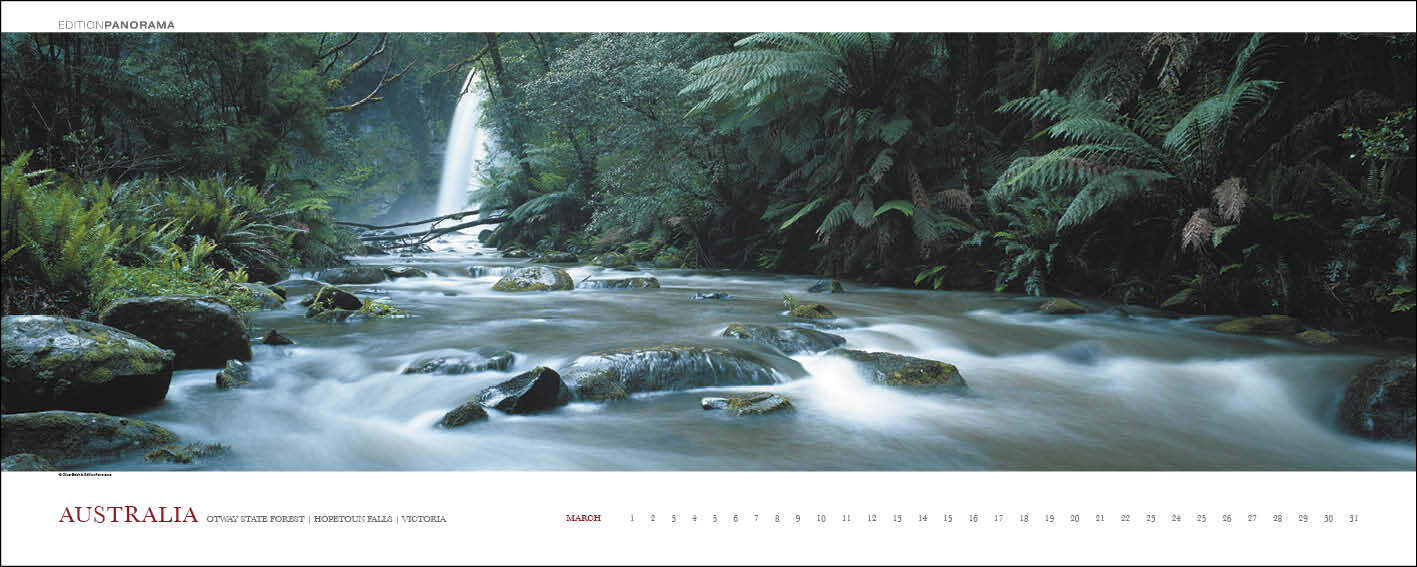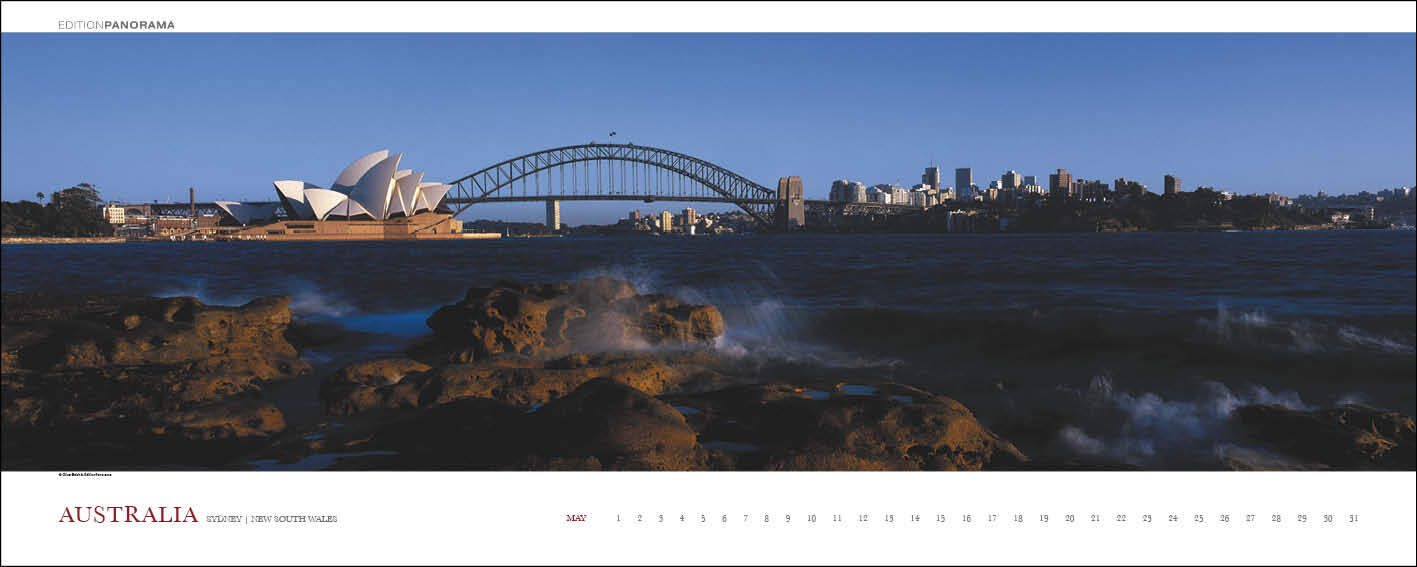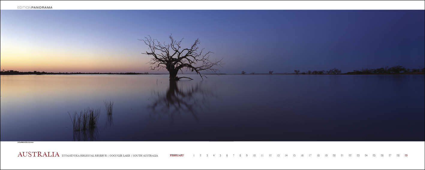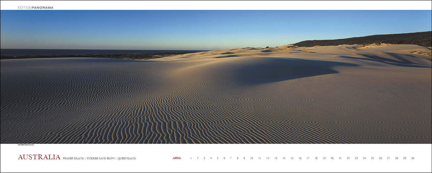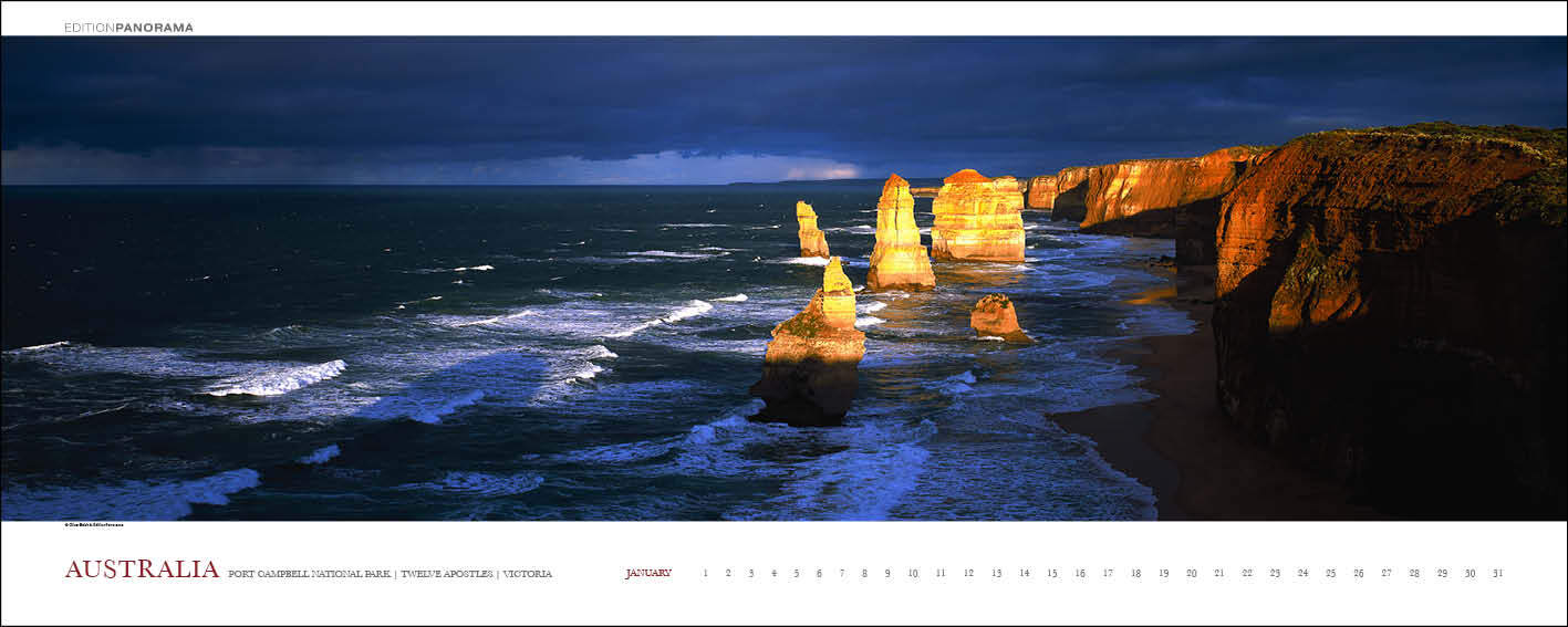 -Immerwährender Panorama-Kalender im Großformat 120 x 48 cm. -in Deutschland gestaltet, gedruckt und in Handarbeit gebunden. -vom Fotografen handsigniert. -im robusten, hochwertigen Versandschuber. Oliver Bolch hat für sein Australien-Projekt den ganzen Kontin...