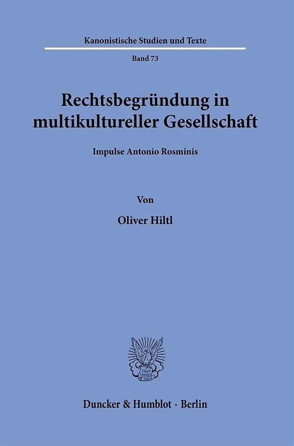 Wie kann unter veränderten gesellschaftlichen Bedingungen eine belastbare Ausgestaltung von Recht und Rechtskonzeption gelingen? Das weist vorliegende Arbeit nach: Es wird anhand der Rechtsphilosophie Antonio Rosminis gezeigt, wie multikulturelle Rechtsbegründ...