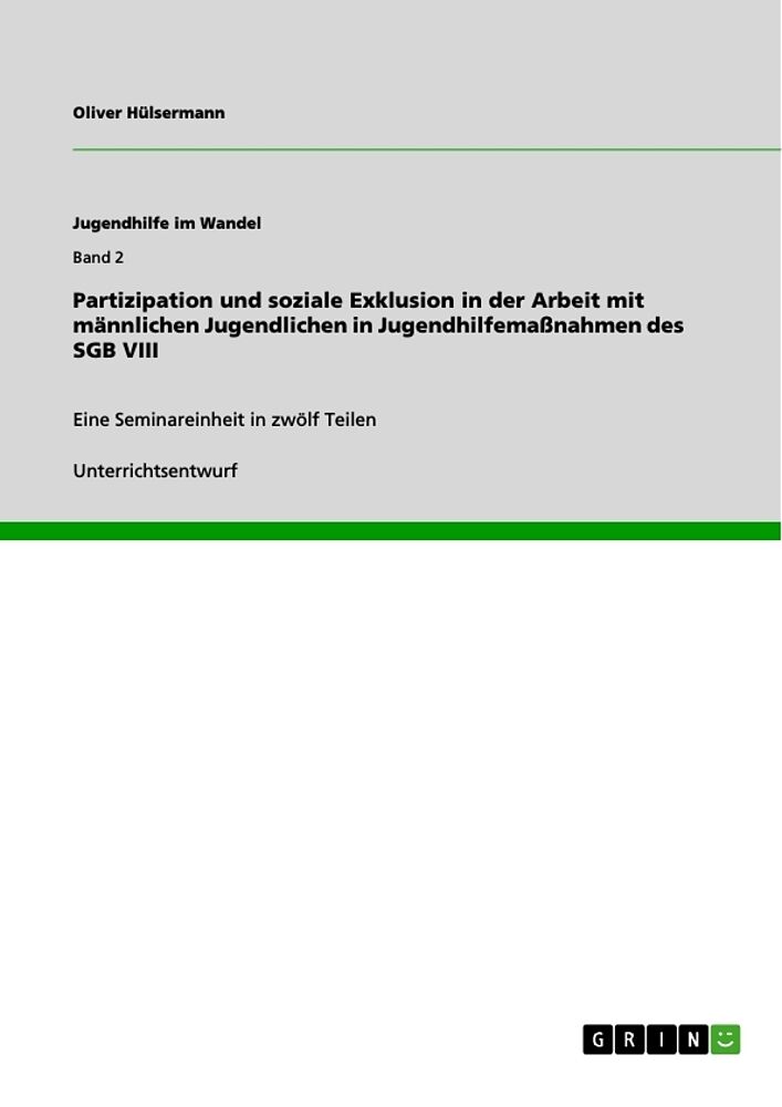 Unterrichtsentwurf aus dem Jahr 2010 im Fachbereich Soziale Arbeit / Sozialarbeit, Evangelische Hochschule Darmstadt, ehem. Evangelische Fachhochschule Darmstadt, Sprache: Deutsch, Abstract: Männlichen Jugendlichen, die im Rahmen einer Jugendhilfemaßnahme des ...