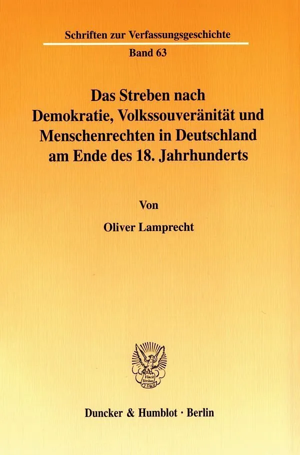 Verfassungsgeschichtsschreibung setzt regelmäßig erst zu Beginn des 19. Jahrhunderts an, wenn nach den Grundlagen für den modernen Verfassungsstaat in Deutschland gesucht wird. Der Autor stellt dar, daß dieser Ansatz zu spät ist, denn bereits in den 1790er Jah...