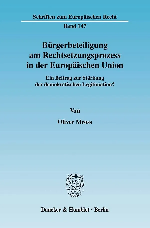 Oliver Mross zeigt auf, unter welchen Bedingungen eine verstärkte Beteiligung der Unionsbürger an den Verfahren der Sekundärrechtsetzung in der EU die bestehenden Demokratie- und Legitimationsdefizite reduzieren kann. Im ersten Teil der Arbeit analysiert er zu...