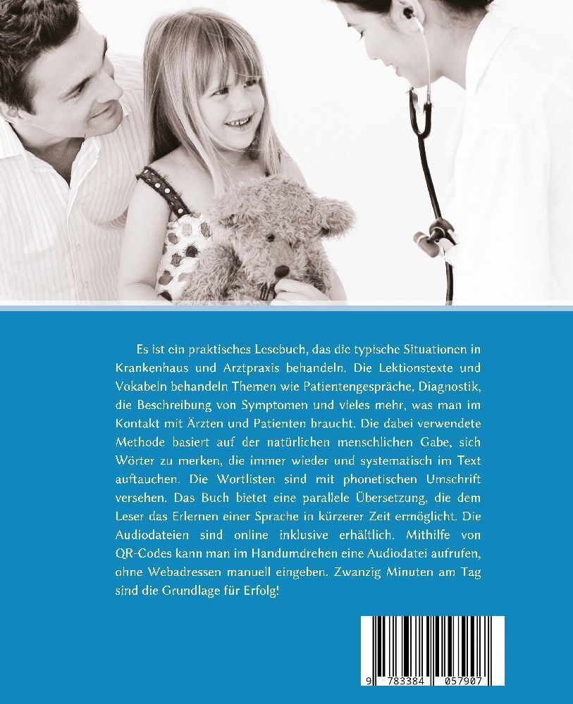 Es ist ein praktisches Lesebuch, das die typische Situationen in Krankenhaus und Arztpraxis behandeln. Die Lektionstexte und Vokabeln behandeln Themen wie Patientengespräche, Diagnostik, die Beschreibung von Symptomen und vieles mehr, was man im Kontakt mit Är...