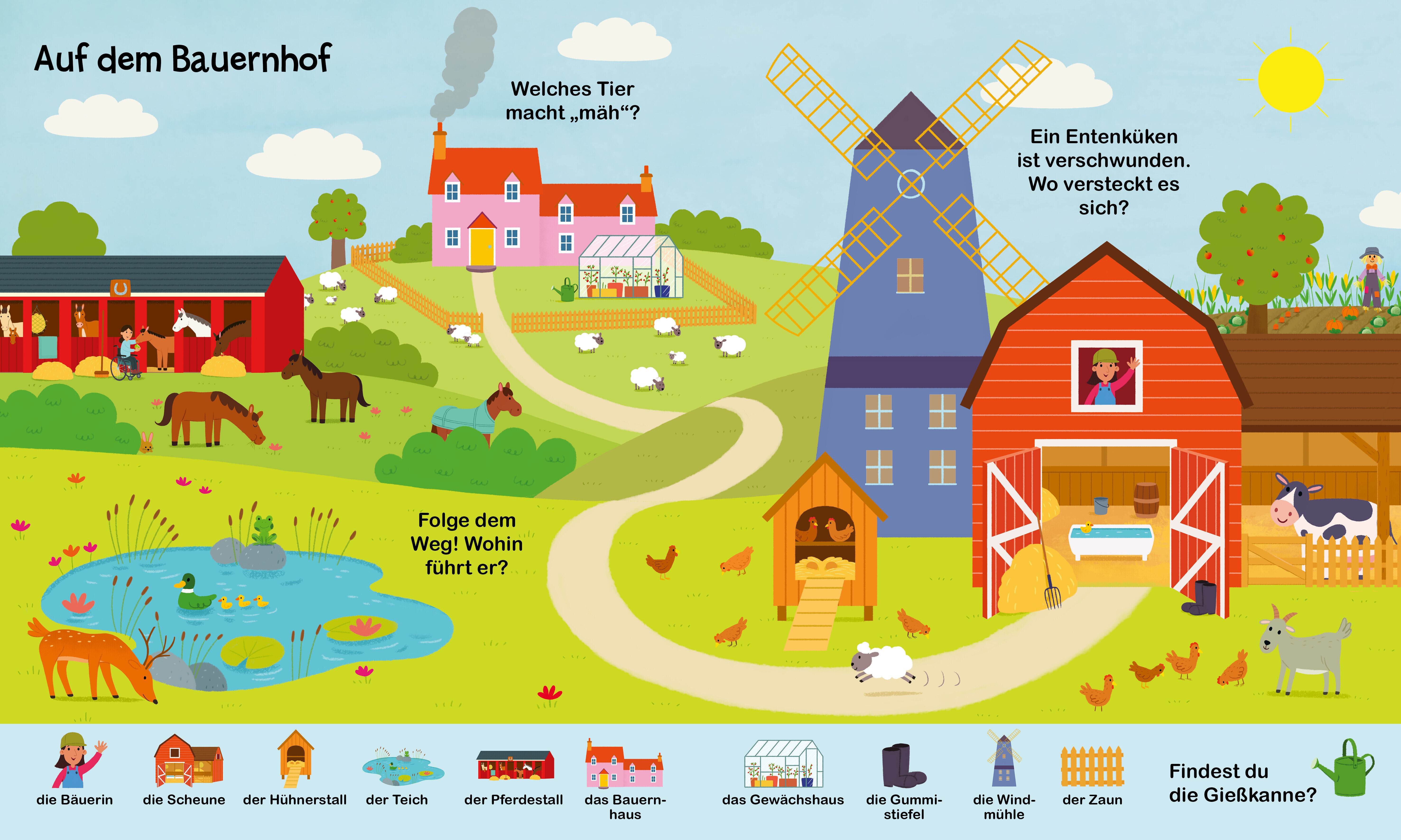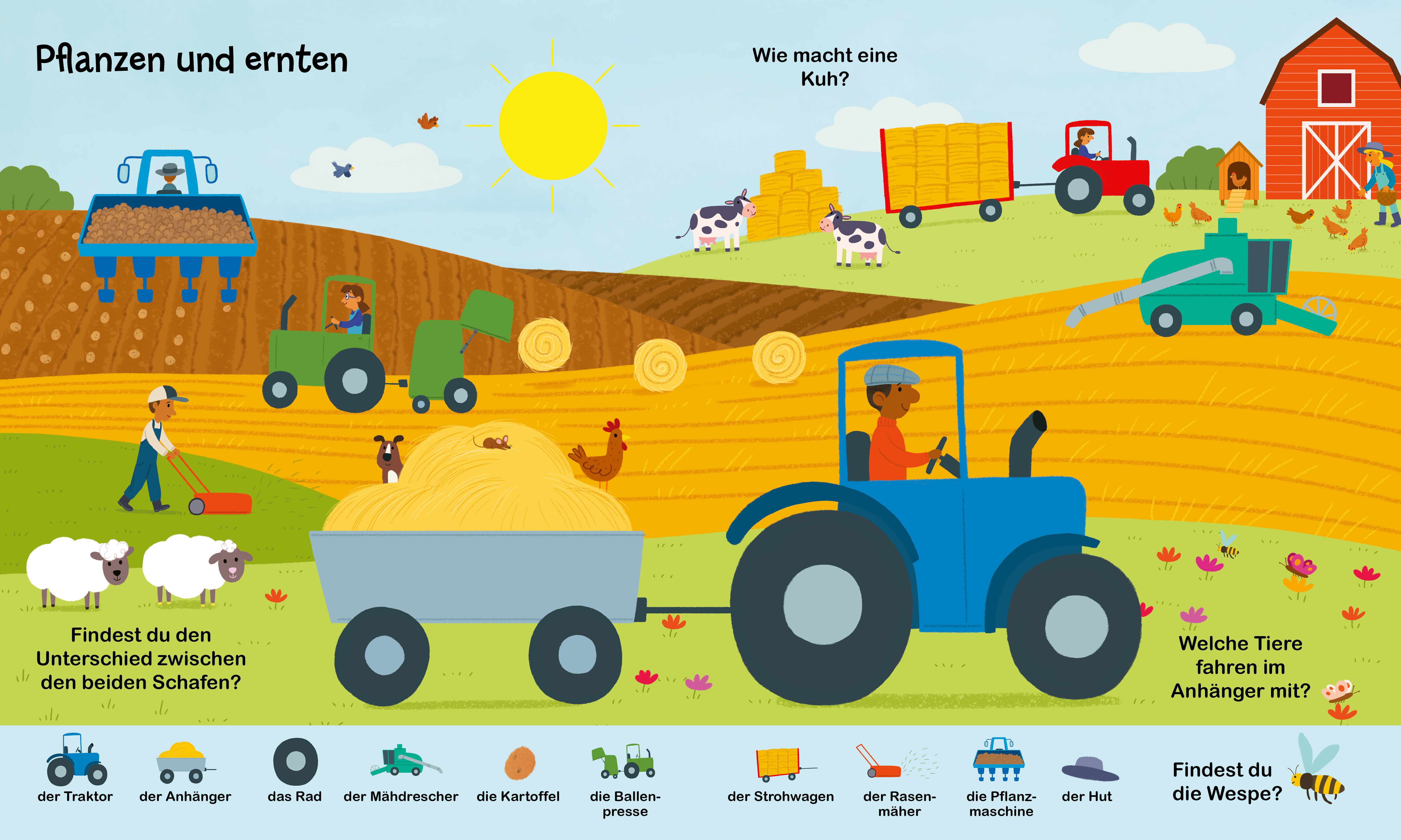 In diesem großen, bunten Wimmelbuch können Kinder das Leben auf dem Bauernhof entdecken. Sie lernen viele Tiere, Pflanzen und Fahrzeuge kennen und begegnen dem Bauer und der Bäuerin bei ihrer täglichen Arbeit. Dabei erweitern sie ganz spielerisch ihren Wortsc...