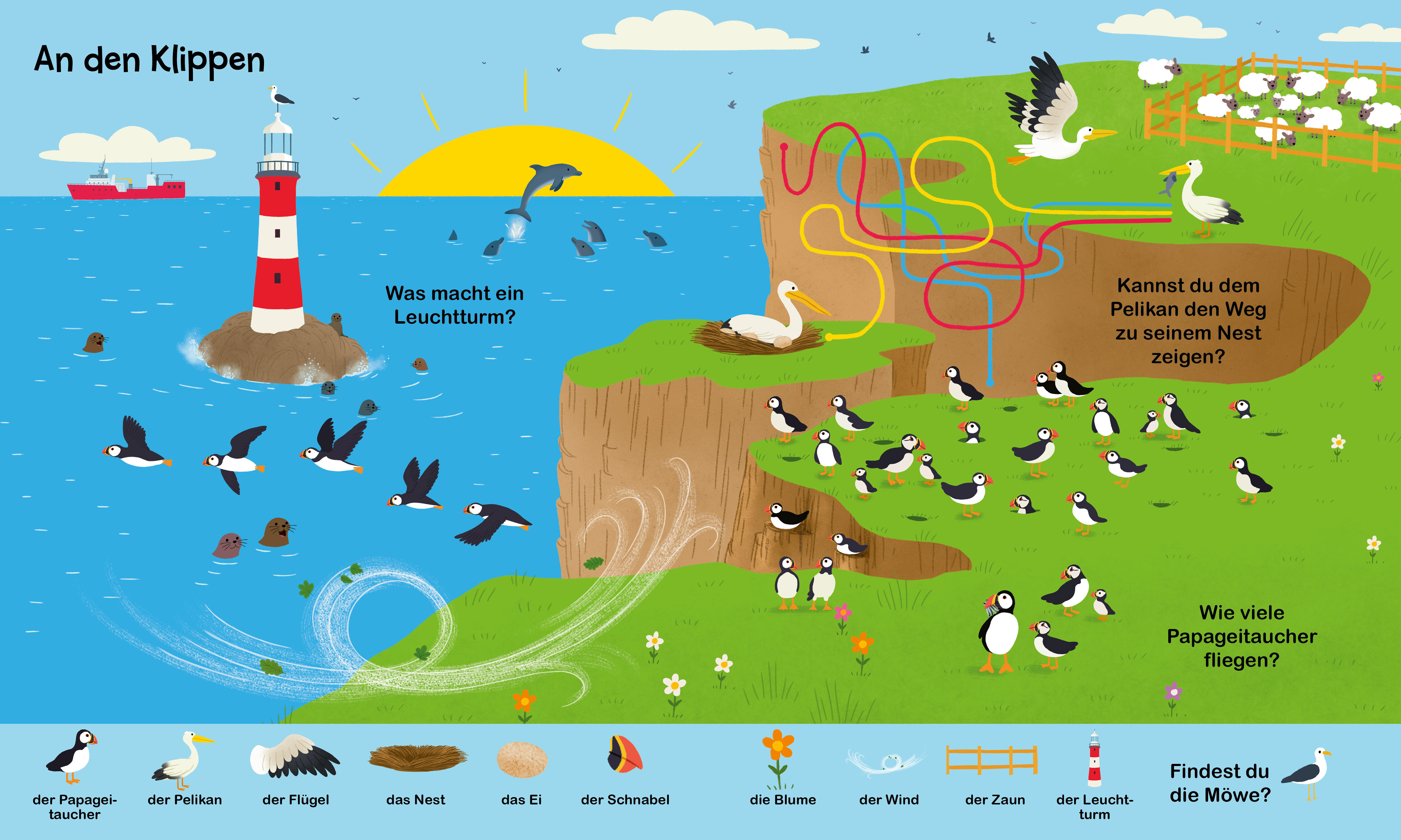 In diesem großen, bunten Wimmelbuch können Kinder im Kindergarten- und Vorschulalter das Leben im und am Meer entdecken. Sie lernen erstaunliche Tiere und Pflanzen kennen, begegnen Menschen und Dingen, die man am Wasser braucht. Dabei erweitern sie ganz spiel...