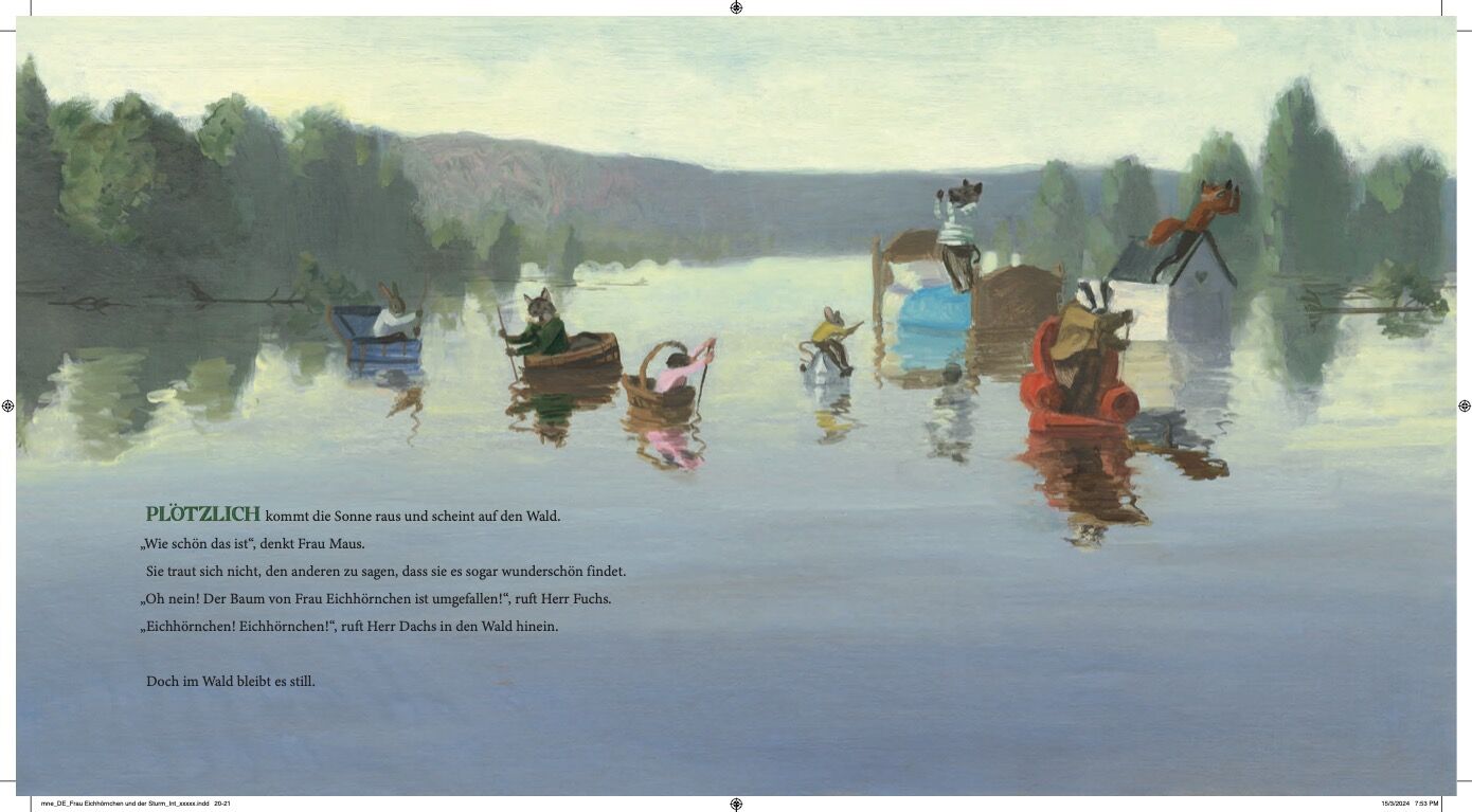 Stürmische Zeiten auf dem Regenschirmhügel! Ein heftiger Sturm bricht los, der Wald wird überschwemmt, Bäume werden entwurzelt. Schnell müssen die Freunde des Regenschirmhügels Schutz suchen! Frau Eichhörnchen hat ihr Zuhause verloren, da findet sie eine selts...