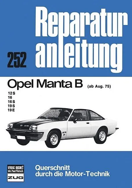 In diesem Band (Nr. 252) wird das Modell Opel Manta B 12 S/16/16 S/19 S/19 E ab August 1975 behandelt. Klappentext Die Reihe Reparaturanleitung ist der professionelle Begleiter für jeden technisch versierten Schrauber. Schritt-für-Schritt-Anleitungen...