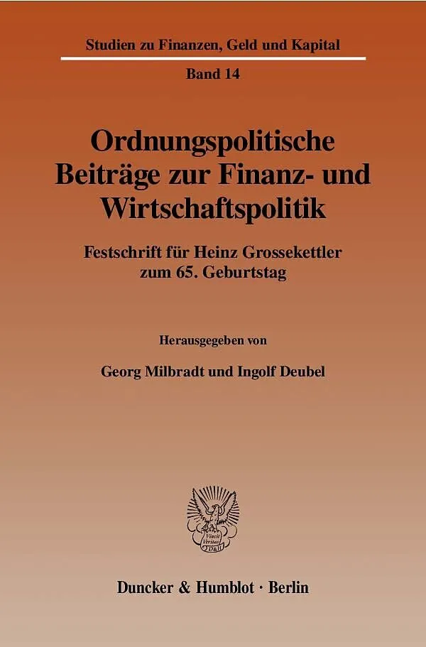 Am 6. April 2004 vollendet Professor Heinz Grossekettler sein 65. Lebensjahr. Zu diesem Anlass widmen ihm Freunde, Schüler und wissenschaftliche Wegbegleiter diese Festschrift. Heinz Grossekettler hat sich in seiner wissenschaftlichen Laufbahn mit einem breite...Am 6. April 2004 vollendet Professor Heinz Grossekettler sein 65. Lebensjahr. Zu diesem Anlass widmen ihm Freunde, Schüler und wissenschaftliche Wegbegleiter diese Festschrift. Heinz Grossekettler hat sich in seiner wissenschaftlichen Laufbahn mit einem breiten Spektrum volkswirtschaftlicher Probleme und Fragen beschäftigt. Dabei hat er stets besonderen Wert auf eine konsequente theoretische und ordnungspolitische Fundierung gelegt und auch den Anspruch auf praktische Verwertbarkeit erhoben. Die Beiträge dieser Festschrift spiegeln das sehr breit gefächerte Interessenspektrum sowie die besonderen Ansprüche des Jubilars wider. In den unterschiedlichen Themenblöcken des Bandes werden deshalb zumeist grundsätzliche Fragestellungen und auch aktuelle finanzpolitische Probleme diskutiert. Im stabilisierungspolitischen Teil reicht das von theoretischen Wirkungen staatlicher Defizite in einer Währungsunion über die Implikationen verschiedenartiger Differenzierungen von konjunkturellen und strukturellen Defiziten bis hin zur Einschätzung der Stärken und Schwächen des Europäischen Stabilitäts- und Wachstumspaktes. Im steuerpolitischen Bereich werden Fragen nach der Stellung der Energiebesteuerung im Steuersystem, nach der ökonomischen Rechtfertigung einer Bodenwertzuwachssteuer sowie die aktuellen Reformoptionen der Gewerbesteuer diskutiert. Im ersten Beitrag des ordnungs- und wettbewerbspolitischen Teils wird eine sorgsame Differenzierung von Angst und Furcht sowie deren Rolle in unterschiedlichen Freiheitsregimes vorgenommen. In den weiteren Beiträgen diskutieren die Autoren grundsätzlich die zunehmende Wirkungslosigkeit prozesspolitischer Maßnahmen in komplexen Volkswirtschaften und das Interaktionsverhältnis von Politikern und Fachspezialisten einerseits und Journalisten andererseits. Darüber hinaus findet eine kritische Diskussion über die Nutzen und Kosten vertikaler Preisbindungsverbote statt. Primär anwendungsorientiert sind der Finanzausgleichsblock, in dem die Bedeutung des Solidarpaktes für die Entwicklung der neuen Länder sowie Möglichkeiten zur Verstetigung der Zuweisungen der Länder an die Kommunen dargestellt werden, und die umweltpolitischen Beiträge, die die globalen klimaschutzpolitischen Verhandlungen und den von der EU geplanten Zertifikatehandel kritisch erörtern.