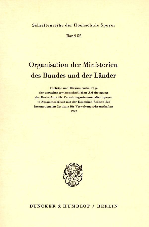 Klappentext Für diesen Titel ist noch kein Beschreibungstext vorhanden. Inhalt Inhalt: E. Laux, Eignung der herkömmlichen Organisation der Ministerien zur Erfüllung ihrer Aufgaben - R. Mayntz / F. W. Scharpf, Probleme der Programmentwicklung in der Ministerial...