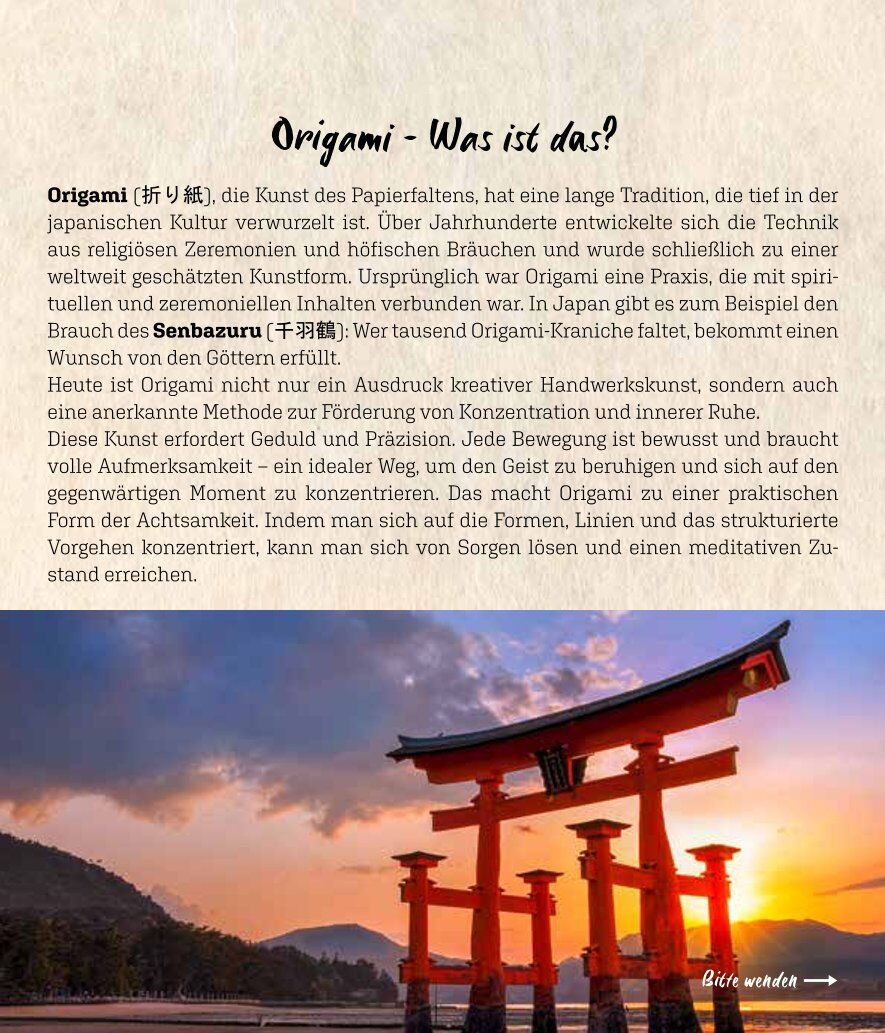 Japanische Origami-Eleganz kreativ falten mit Stil: Origami ist mehr als nur Papierfalten es ist eine jahrhundertealte Kunst aus Japan, die Ruhe, Achtsamkeit und Kreativität verbindet. Beim Falten fokussierst du dich ganz auf den Moment, findest Entspannung un...