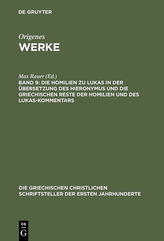 ORIGENES:WERKE BD. 9 HOMILIEN ZU LUKAS GCS 49 Klappentext The series is devoted to Christian texts from the Greek-speaking parts of the ancient Roman Empire. Published since 1897 (first in Leipzig, then in Berlin) by the Royal Prussian Academy under the projec...