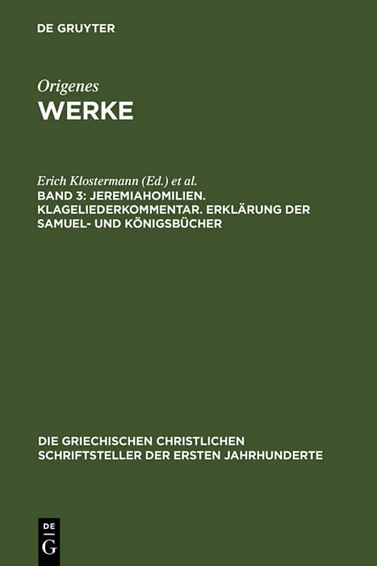 No detailed description available for "Jeremiahomilien. Klageliederkommentar. Erklärung der Samuel- und Königsbücher". Klappentext The series of Greek Christian Writers of the First Centuries AD (GCS) started in Leipzig in 1897, then moved to Berlin, and to Wa...