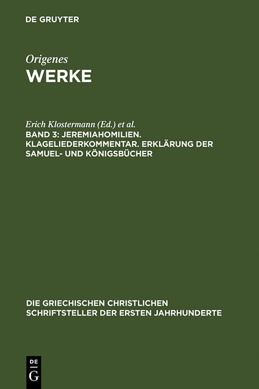 No detailed description available for "Jeremiahomilien. Klageliederkommentar. Erklärung der Samuel- und Königsbücher". Klappentext The series of Greek Christian Writers of the First Centuries AD (GCS) started in Leipzig in 1897, then moved to Berlin, and to Wa...