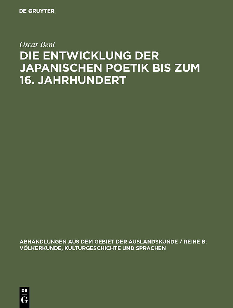 Keine ausführliche Beschreibung für "Die Entwicklung der japanischen Poetik bis zum 16. Jahrhundert" verfügbar. Frontmatter -- Inhaltsverzeichnis -- Einführung -- A. Die ersten Ansätze zur Gedichtkritik. Chinesische Einflüsse. -- B. Beginn der rein j...