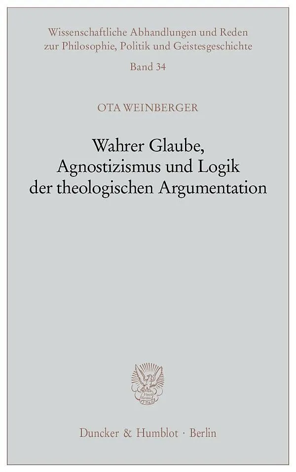 Ota Weinberger versucht, die logische Analyse für die theologische Argumentation nutzbar zu machen und Forderungen für eine Moral des friedfertigen Diskurses aufzustellen. Hierzu bestimmt er zunächst eine logische und methodologische Charakteristik des Glauben...