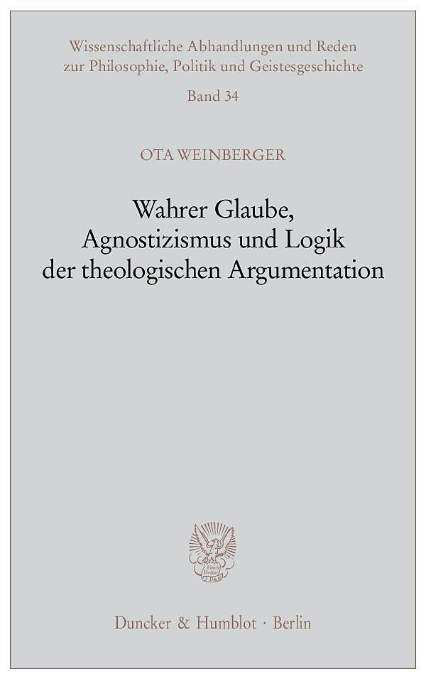 Ota Weinberger versucht, die logische Analyse für die theologische Argumentation nutzbar zu machen und Forderungen für eine Moral des friedfertigen Diskurses aufzustellen. Hierzu bestimmt er zunächst eine logische und methodologische Charakteristik des Glauben...