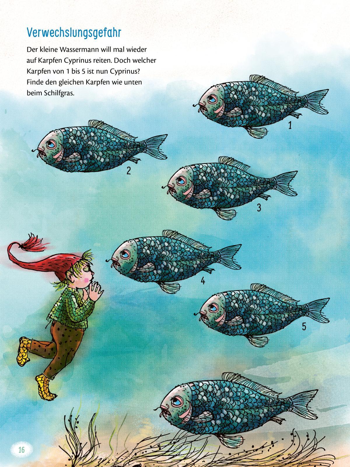 Gegen die Langeweile mit dem großen Rätselbuch vom kleinen Wassermann, für Kinder ab 6 Jahren. Zusammen mit dem kleinen Wassermann können Kinder in über 100 kniffligen Rätseln die Welt rund um den Mühlenweiher erkunden, indem sie Bilderpaare finden, Irrgärten...