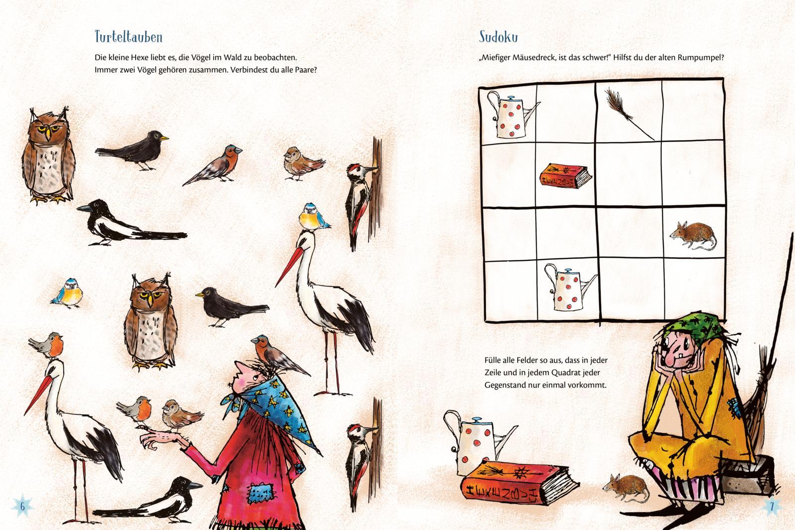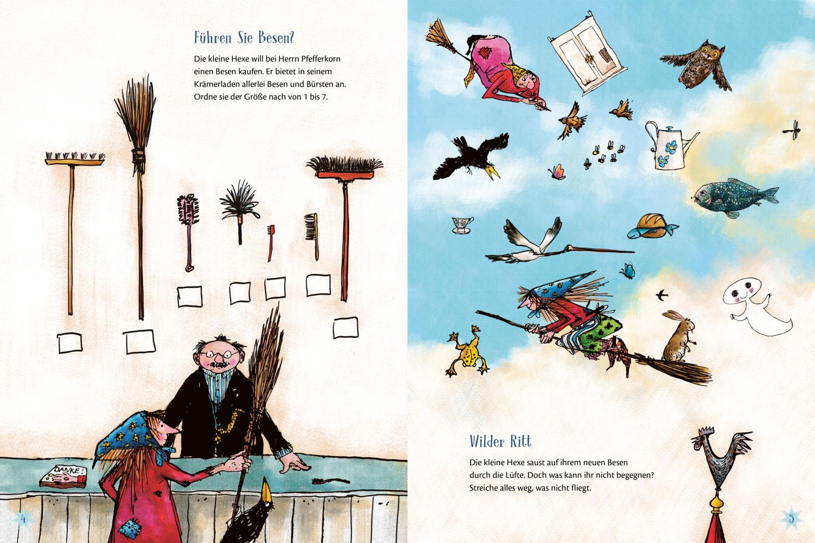 Mit der kleinen Hexe zaubern und rätseln Gegen die Langeweile mit dem großen Rätselbuch von der kleinen Hexe, für Kinder ab 6 Jahren Zusammen mit der kleinen Hexe können Kinder in über 100 kniffligen Zauberrätseln Bilderpaare finden, Irrgärten durchqueren, Bil...