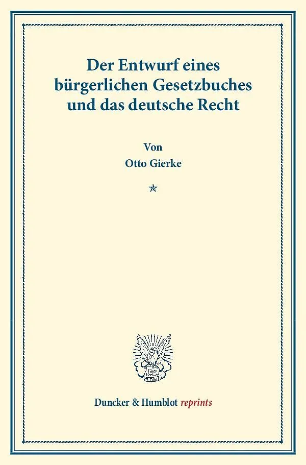 Das vorliegende Werk des großen Rechtsgelehrten Otto Gierke versammelt einige von ihm in Schmollers Jahrbuch veröffentlichte Beiträge zum Entwurf eines Bürgerlichen Gesetzbuches für das Deutsche Reich. Auch nach der 1871 vollzogenen Reichsgründung behielt in D...