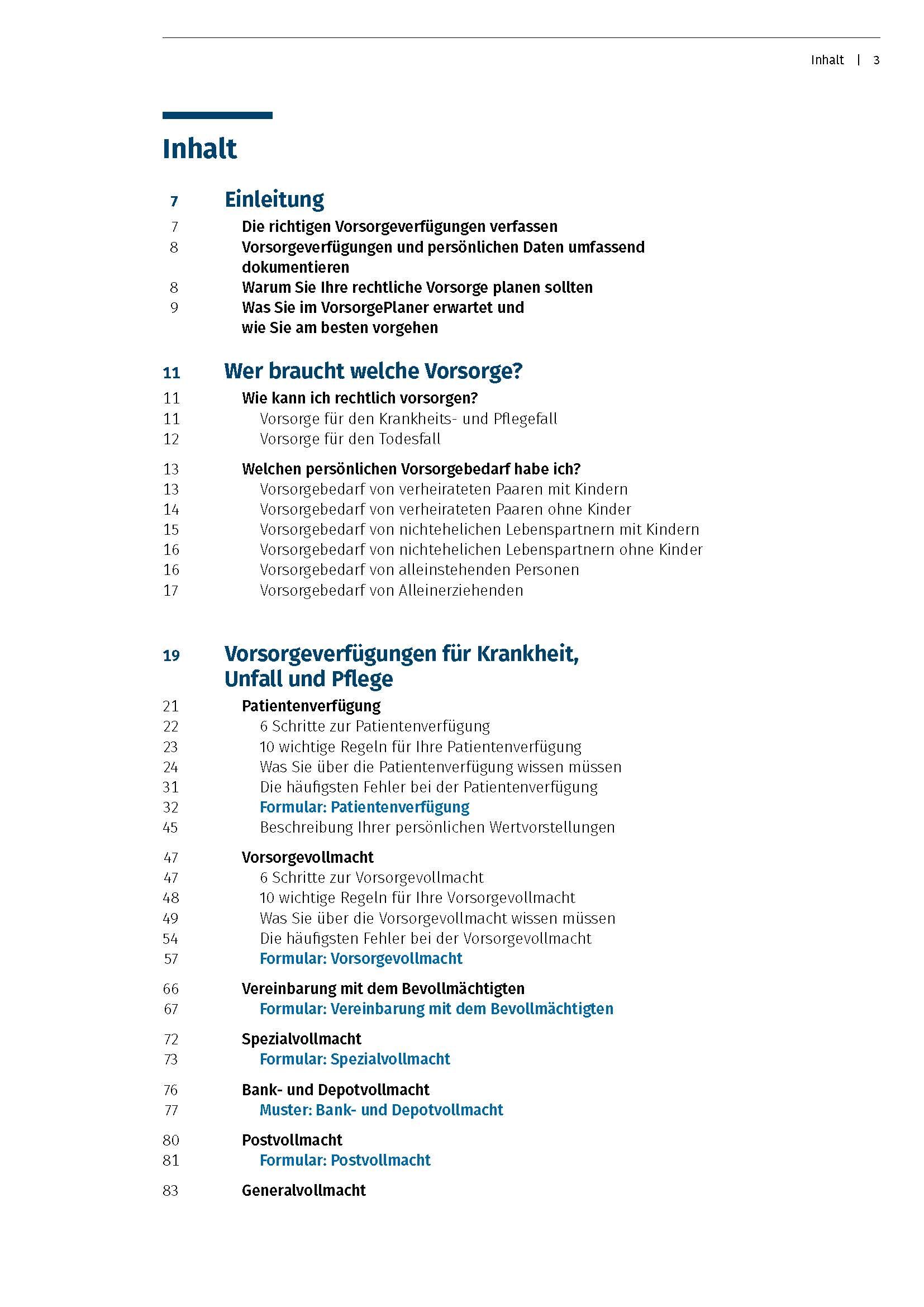 Mit dem schriftlichen Festhalten Ihrer Wünsche und Vorstellungen machen Sie es Familienmitgliedern und Freunden sogar einfacher. Denn es entfällt ein Raten, was sich die Eltern denn gewünscht hätten und ob eine Entscheidung in ihrem Sinne gewesen wäre. Teilen Sie Ihrer Familie Ihre Vorstellungen so gut es geht schon heute mit: Der VorsorgePlaner mit Checklisten, Formularen und Mustern macht Ihnen die Regelungen Ihrer Wünsche so einfach wie möglich.