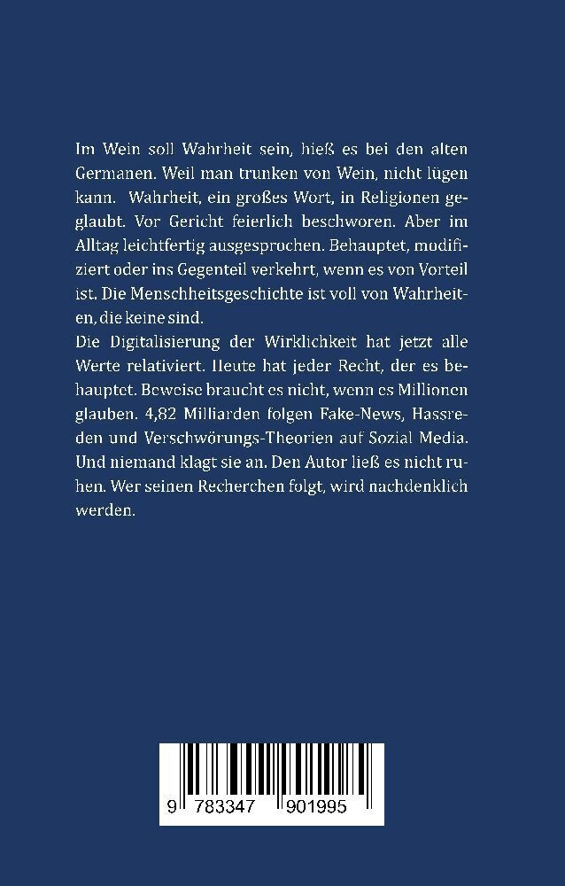Im Wein soll Wahrheit sein, hieß es bei den alten Germanen. Weil man trunken von Wein, nicht lügen kann. Wahrheit, ein großes Wort, in Religionen geglaubt. Vor Gericht feierlich beschworen. Aber im Alltag leichtfertig ausgesprochen. Behauptet, modifiziert oder...