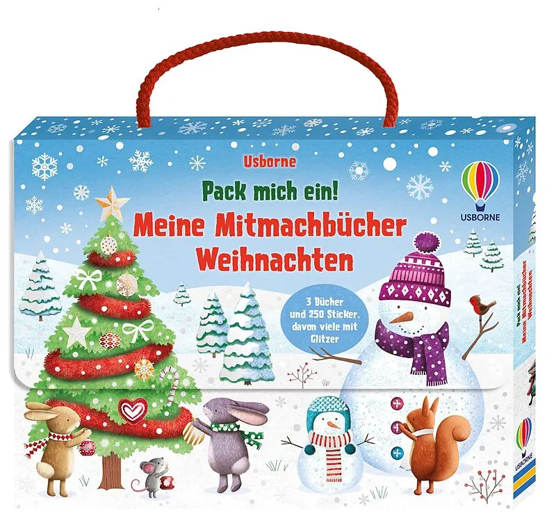 Kreative Vorweihnachts-Beschäftigung In diesem bunten Koffer stecken drei weihnachtliche Mitmachbücher: ein Stickerbuch mit über 250 Stickern, davon viele mit Glitzer, ein Malbuch und ein Wimmelbuch. Dank des handlichen Formats lassen sich die Bücher ganz lei...