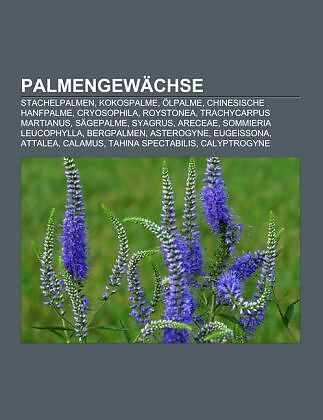 Quelle: Wikipedia. Seiten: 186. Kapitel: Stachelpalmen, Kokospalme, Ölpalme, Chinesische Hanfpalme, Cryosophila, Roystonea, Trachycarpus martianus, Sägepalme, Syagrus, Areceae, Sommieria leucophylla, Bergpalmen, Asterogyne, Eugeissona, Attalea, Calamus, Tahina...Quelle: Wikipedia. Seiten: 186. Kapitel: Stachelpalmen, Kokospalme, Ölpalme, Chinesische Hanfpalme, Cryosophila, Roystonea, Trachycarpus martianus, Sägepalme, Syagrus, Areceae, Sommieria leucophylla, Bergpalmen, Asterogyne, Eugeissona, Attalea, Calamus, Tahina spectabilis, Calyptrogyne, Hanfpalmen, Salacca, Fischschwanzpalmen, Betelnusspalme, Echte Dattelpalme, Zombia antillarum, Metroxylon, Daemonorops, Trachycarpus takil, Dattelpalmen, Ptychococcus, Kerriodoxa elegans, Trachycarpus geminisectus, Wettinia, Arenga, Raphia, Ravenea, Iriartea deltoidea, Korthalsia, Sagopalme, Iguanura, Oncosperma, Euterpe oleracea, Plectocomia, Wallichia, Retispatha dumetosa, Thrinax, Calyptronoma, Roscheria melanochaetes, Copernicia, Rhopaloblaste, Betelpalmen, Ceratolobus, Macauba-Palme, Neoveitchia, Sabal, Plectocomiopsis, Nannorrhops ritchiana, Trachycarpus nanus, Verschaffeltia splendida, Phoenicophorium borsigianum, Laccosperma, Rhapis, Rhapis excelsa, Hyophorbe indica, Nephrosperma van-houtteanum, Pigafetta, Pogonotium, Eremospatha, Oncocalamus, Mauritia, Oenocarpus, Guihaia, Hyospathe, Maxburretia, Petticoat-Palmen, Euterpe catinga, Spindelpalme, Königspalme, Dransfieldia micrantha, Mauritiella, Lepidocaryum tenue, Prestoea, Neonicholsonia watsonii, Zwerg-Dattelpalme, Coccothrinax, Beccariophoenix alfredii, Kretische Dattelpalme, Eleiodoxa conferta, Myrialepis paradoxa, Seychellenpalme, Doumpalmen, Euterpe edulis, Euterpe precatoria, Geonoma, Kanarische Dattelpalme, Latania, Steinnusspalmen, Goldfruchtpalme, Deckenia nobilis, Chuniophoenix, Trithrinax, Oraniopsis appendiculata, Palmyrapalme, Babassupalme, Zuckerpalme, Cocoseae, Calameae, Borassus, Geleepalmen, Medemia argun, Pfirsichpalme, Trachycarpeae, Coryphoideae, Quindio-Wachspalme, Juania australis, Chelyocarpus, Arecoideae, Leucothrinax morrisii, Borassodendron, Euterpe broadwayi, Buriti-Palme, Strahlenpalmen, Nipapalme, Roystonea borinquena, Ceroxylon, Ceroxyloideae, Itaya amicorum, Euterpe luminosa, Pseudophoenix, Hemithrinax, Calamoideae, Lepidocaryeae, Howea forsteriana, Cryosophila stauracantha, Satranala decussilvae, Roystonea altissima, Ölpalmen, Borasseae, Aphandra natalia, Schippia concolor, Attalea dubia, Honigpalme, Zwergpalme, Cryosophileae, Nikau-Palme, Bismarckpalme, Yatay-Palme, Carnaubapalme, Caryoteae, Ammandra decasperma, Silber-Dattelpalme, Äthiopische Palmyrapalme, Nadelpalme, Phytelepheae, Palmettopalme, Euterpe longibracteata, Bactris, Iriarteeae, Hyophorbe amaricaulis, Socratea exorrhiza, Borassus akeassii, Flaschenpalme, Zwergpalmettopalme, Roystonea stellata, Roystonea dunlapiana, Chuniophoeniceae, Geonomateae, Salakpalme, Chamaedoreeae, Pelagodoxeae, Ceroxyleae, Schopfpalmen, Euterpeae, Masoala, Copernicia macroglossa, Großblättrige Strahlenpalme, Copernicia hospita, Talipot-Palme, Copernicia baileyana, Stelzenpalmen, Senegalesische Dattelpalme, Kentia-Palmen, Sabal uresana, Copernicia tectorum, Attalea amygdalina, Klippen-Dattelpalme. Auszug: Die Stachelpalmen (Aiphanes), auch Stilettpalmen, sind eine Gattung von 25 Arten der Palmengewächse (Arecaceae), die auf den Kleinen Antillen, sowie von Venezuela bis Bolivien entlang der Anden verbreitet sind. Bis auf eine Art, die noch Panama erreicht, fehlen die Stachelpalmen in Mittelamerika. Sie fallen vor allem durch ihre bis über 25 Zentimeter langen Stacheln auf, die die Pflanzen fast komplett bedecken. Stachelpalmen sind ausdauernde, verholzende Pflanzen. Durch unterschiedliche Verzweigungsarten können die Palmen ver...
