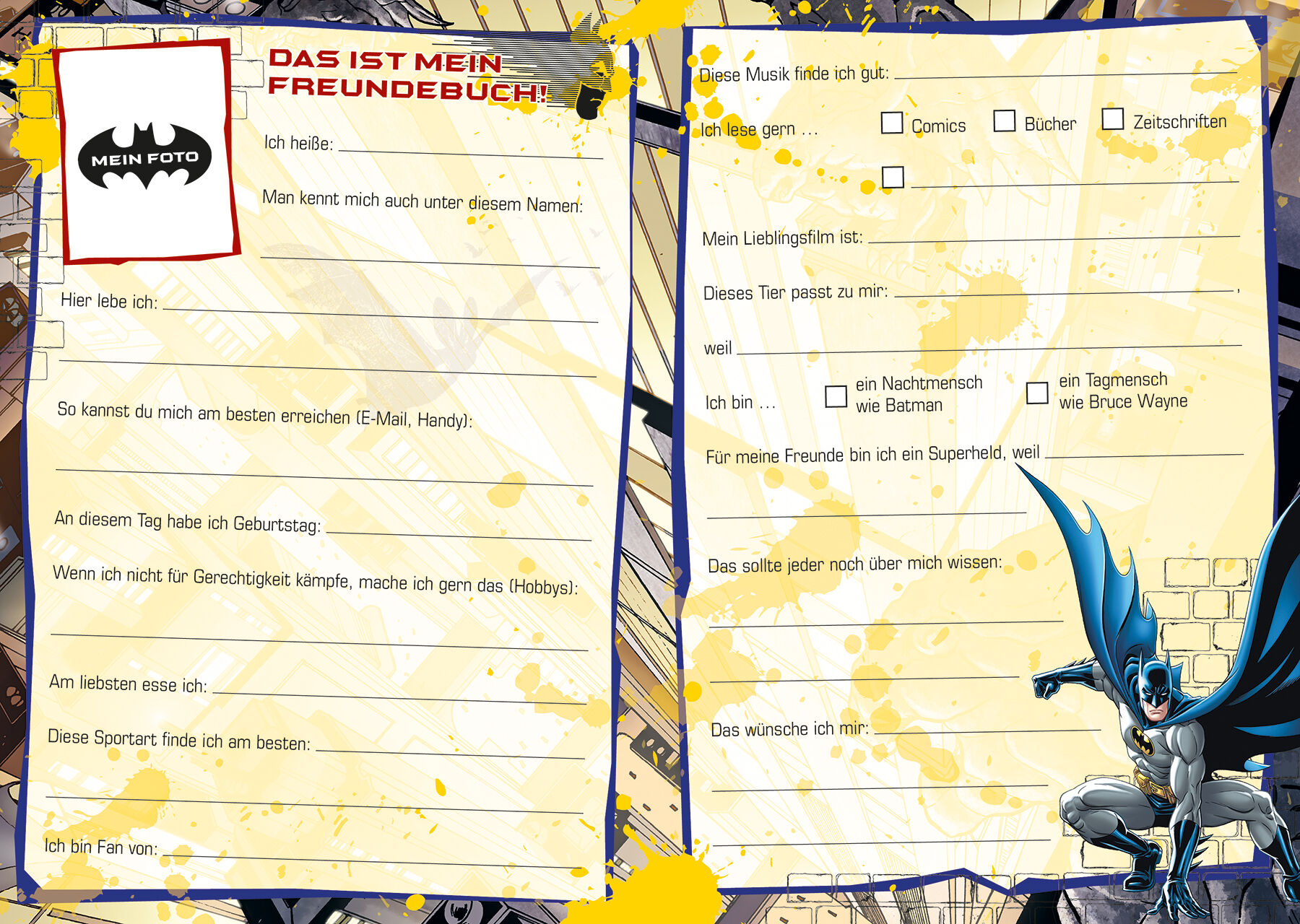Dieses fledermausstarke Batman-Freundebuch ist eine einzigartige Erinnerung an alle deine Freunde! Hier können sie dir Geheimnisse verraten und coole Fotos einkleben. Mit Geburtstagskalender! Dieses Freundebuch ist genau das Richtige für echte Batman-Fans! Hie...