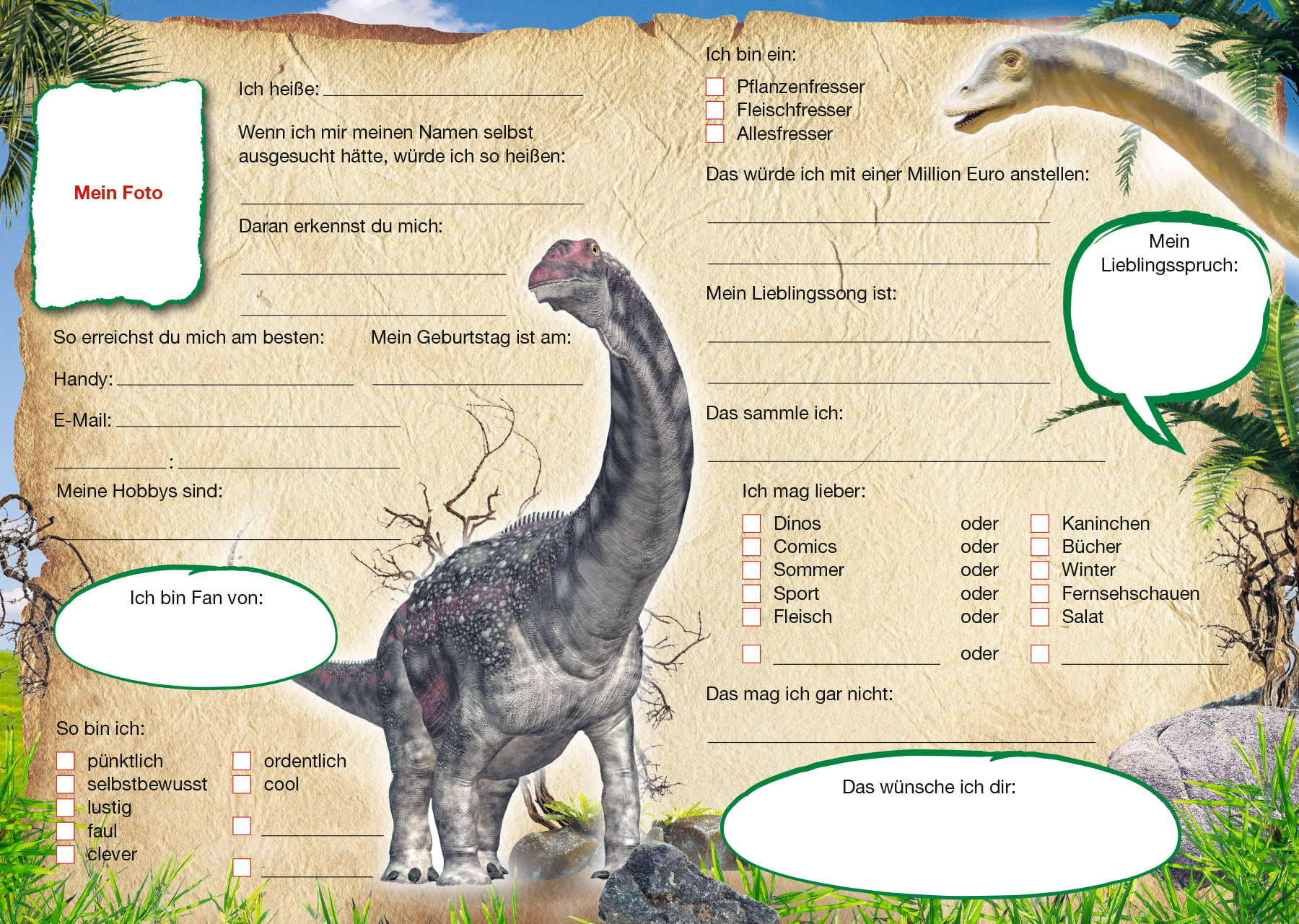 Dieses Freundebuch ist genau das Richtige für alle Dino-Fans. Begleitet von T-Rex, Triceratops, Stegosaurus und Co. werden die größten Geheimnisse gelüftet. Wie würden deine Freunde heißen, wenn sie sich ihre Namen selbst ausgesucht hätten? Wer gehört zu den F...