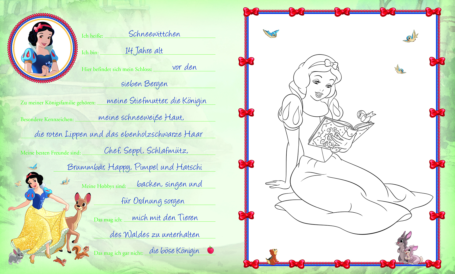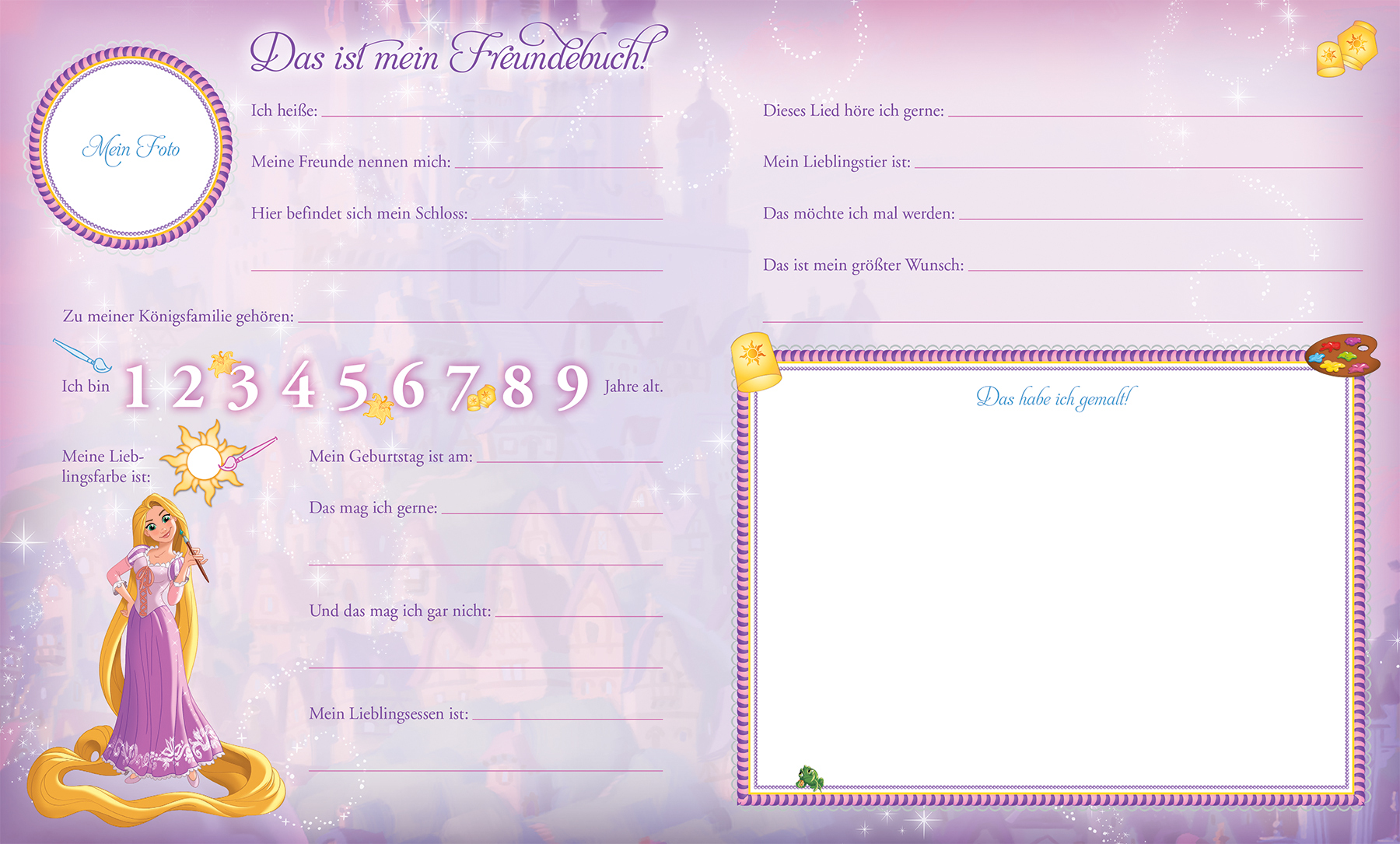 In diesem märchenhaften Album können sich alle deine Freunde mit kleinen Einträgen und einem selbst gemalten Bild verewigen. Auch die Disney Prinzessinnen Arielle, Cinderella, Belle, Jasmin, Rapunzel und Schneewittchen haben sich bereits eingetragen und verrat...