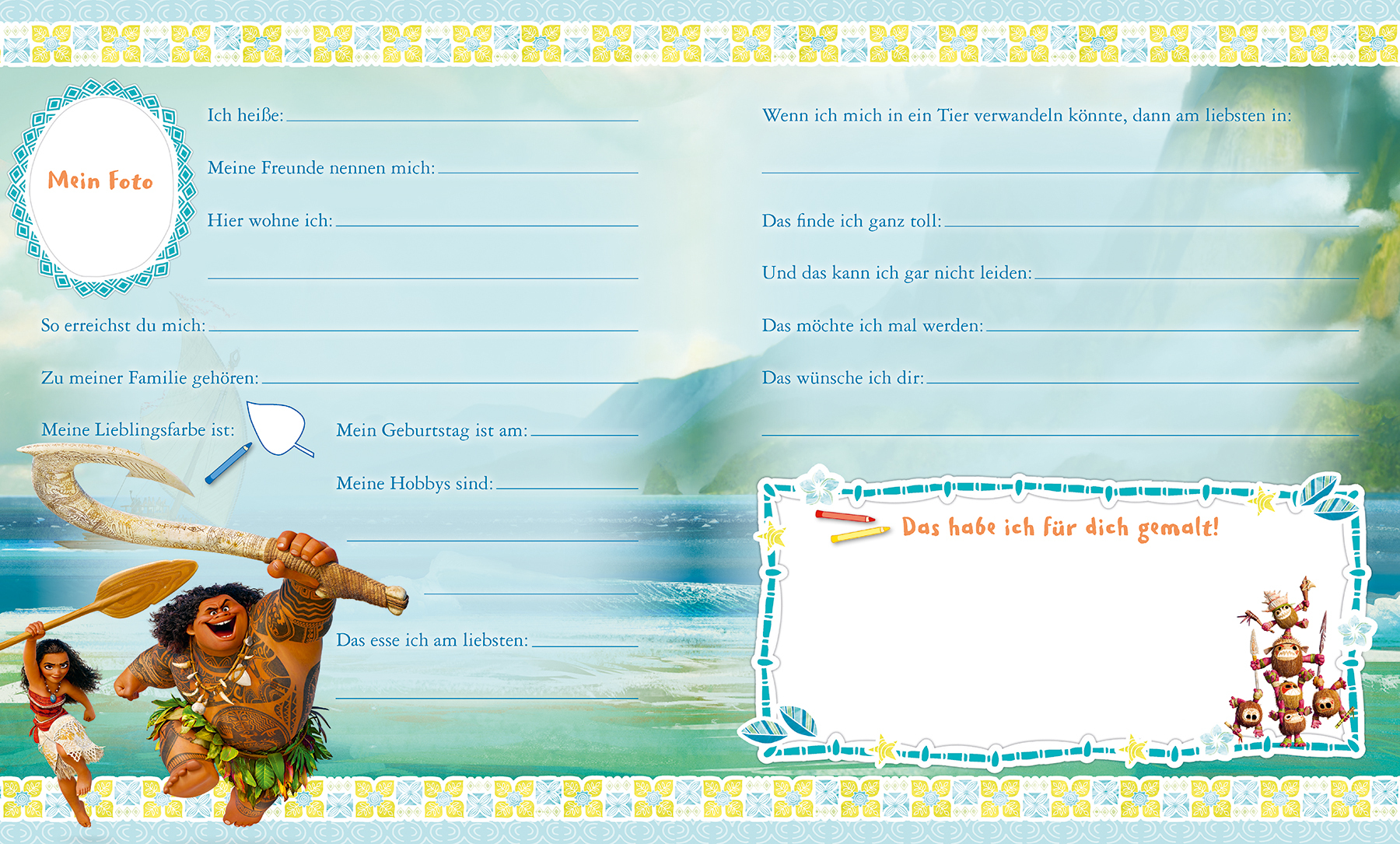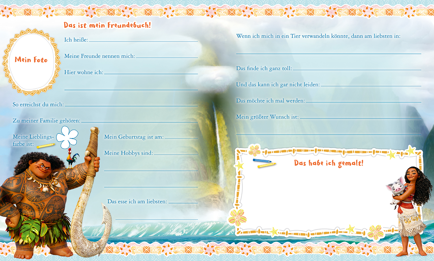 In diesem liebevoll gestalteten Album können sich alle deine Freunde mit kleinen Einträgen und einem selbst gemalten Bild verewigen. Vaiana und Maui haben sich bereits eingetragen und verraten dir das ein oder andere Geheimnis. Außerdem hält das Freundebuch sp...