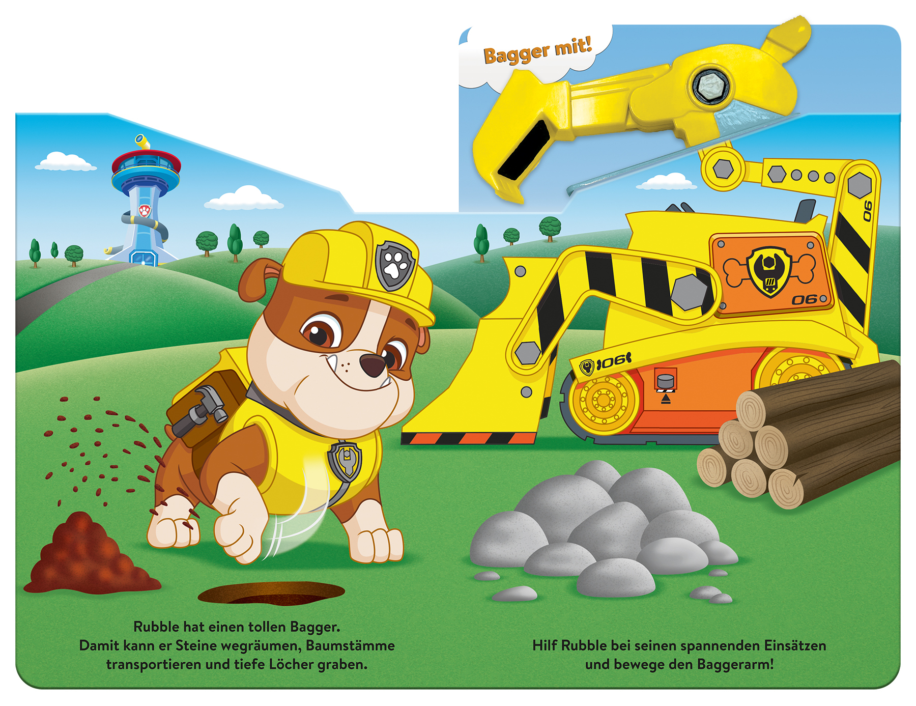 Paw Patrol: Bagger Mit Rubble! Ist jemand in Not oder gar in Gefahr, ist Rubble zur Stelle, das ist doch klar! Hier können kleine Fans der PAW Patrol ihrem Helden Rubble bei dessen Einsätzen mit dem Bagger helfen und den Baggerarm selbst bewegen. Ein spannende...