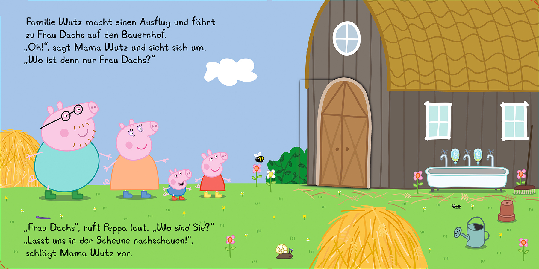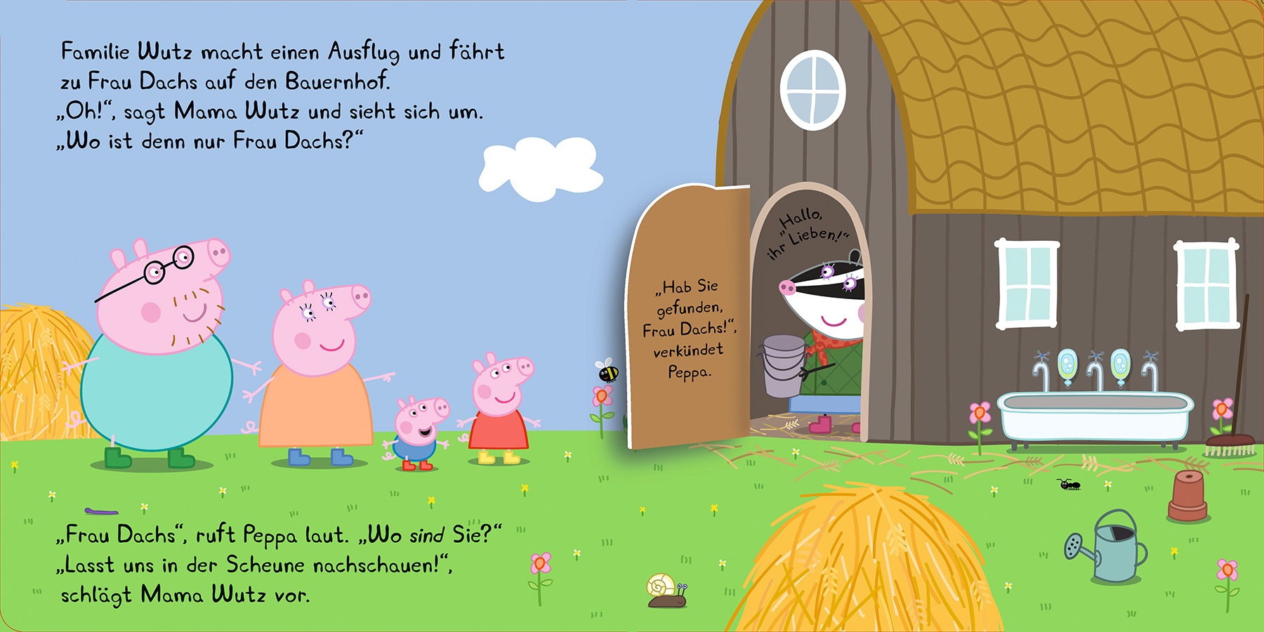 Peppa und ihre Familie besuchen Frau Dachs auf dem Bauernhof. Aber wo verstecken sich nur all die Tiere? Schau hinter die Klappen und hilf Peppa, sie zu finden!